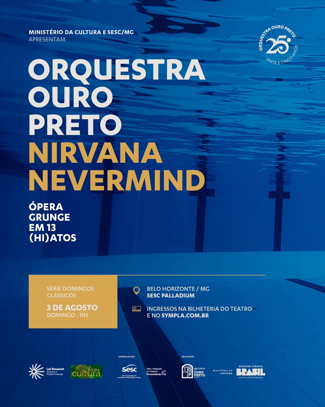 A Série Domingos Clássicos chega ao seu 10º ano com uma edição especial e cheia de significado. Em 2025, quando também celebra seus 25 anos de história, a Orquestra Ouro Preto convida o público para uma experiência sonora única: um tributo ao icônico álbum Nevermind, da banda norte-americana Nirvana. O concerto será realizado no domingo, dia 3 de agosto, às 11h, no Grande Teatro do Sesc Palladium, com ingressos a preços populares.