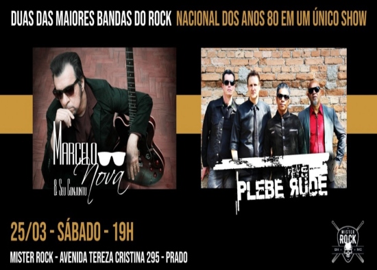 Comemorando 7 Anos do Mister Rock, vem aí duas grandes bandas dos Anos 80! Botando pra fud* e Rachando o Concreto, esses 2 ícones do Rock and Roll Brazuca, prometem um show eletrizante do começo ao fim.