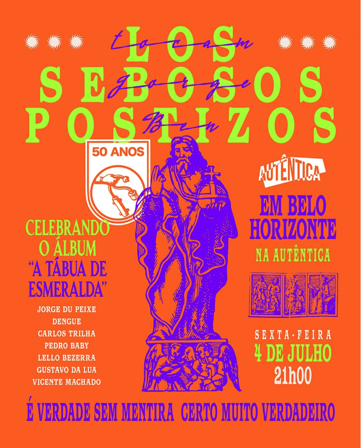 Pela primeira vez na Autêntica, Los Sebosos Postizos apresentam o show de celebração dos 50 anos do icônico álbum, de Jorge Ben Jor, "A Tábua de Esmeraldas", dia 04 de Julho.