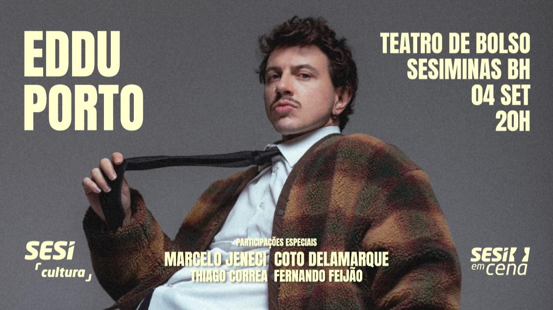 O Festival SESI em Cena 2025 recebe o cantor, compositor e multi-instrumentista Eddu Porto, que apresenta no dia 4 de setembro, às 20h, o show do EP “Terapia”, no Teatro de Bolso do Centro Cultural Sesiminas, em Belo Horizonte. Com sonoridade envolvente e letras profundas, o espetáculo convida o público a mergulhar em uma jornada emocional onde música e autoconhecimento caminham lado a lado.