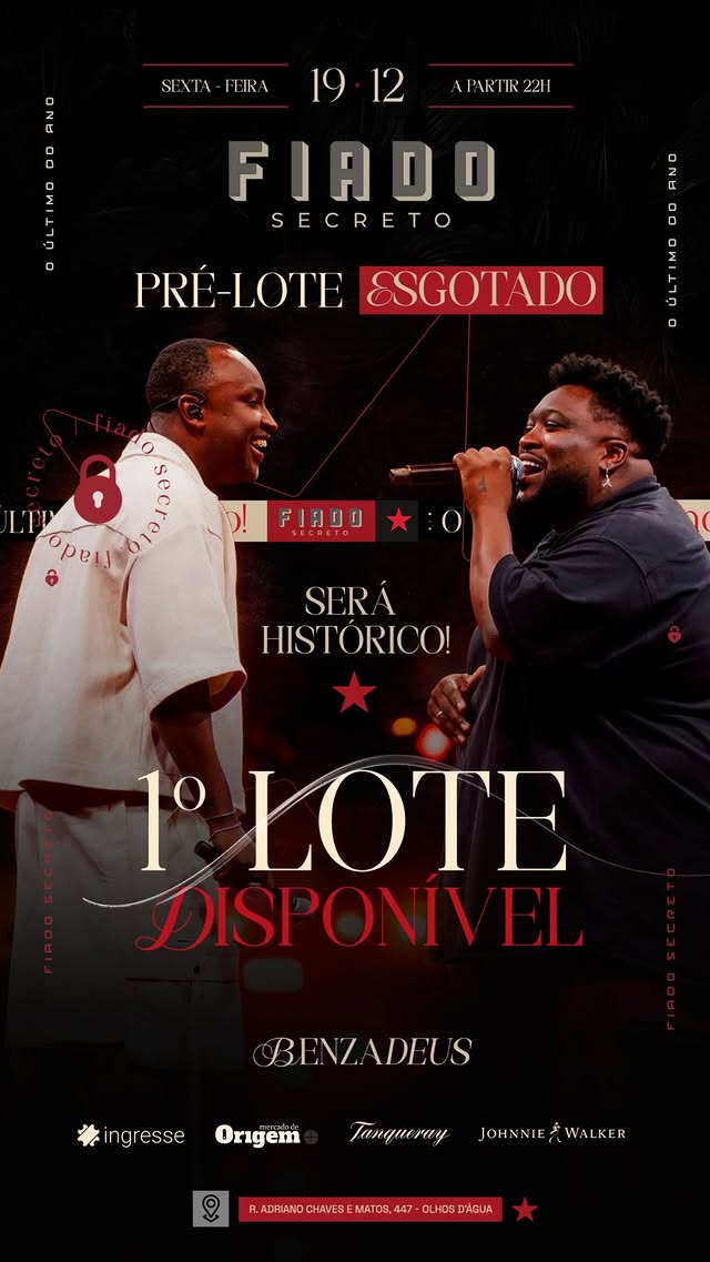 O destaque da noite é a primeira apresentação do Grupo Benzadeus na capital mineira, reconhecido nacionalmente pela energia vibrante, repertório envolvente e performances que transformam qualquer encontro em festa. Mantendo a essência que consolidou o Fiado Secreto como um dos eventos mais queridos da cidade, o público encontrará a já tradicional combinação de samba, atmosfera descontraída e muita animação.