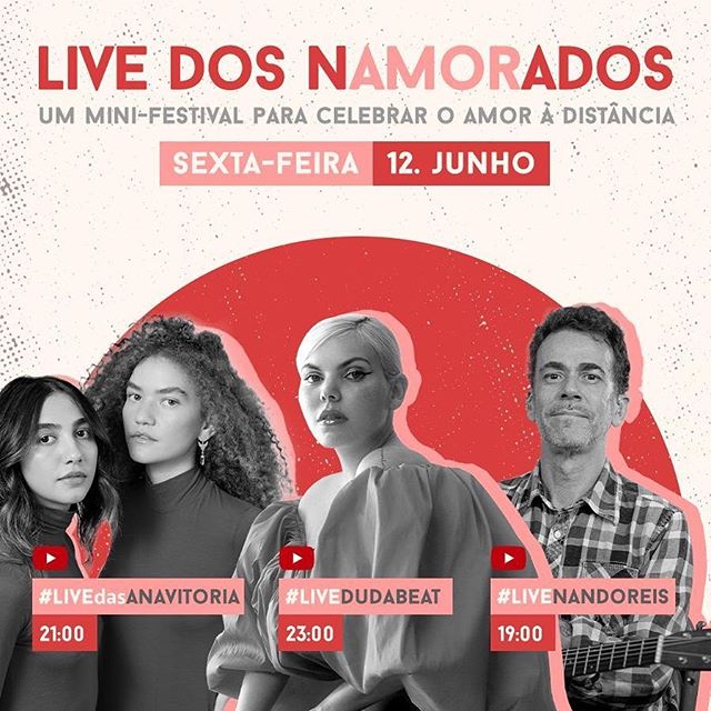 Um mini-festival para celebrar o amor à distancia, com Nando Reis às 19h, Anavitória às 21h e Duda Beat às 23h.