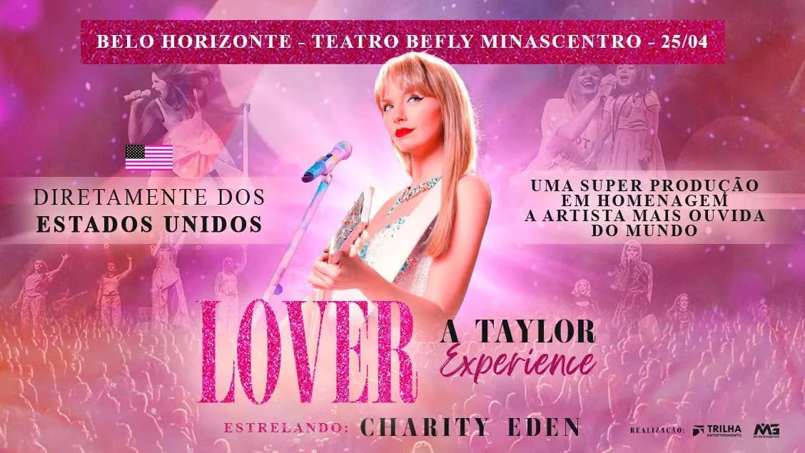 Vindo diretamente dos Estados Unidos, o espetáculo “LOVER – A Taylor Experience”, estrelado pela artista Charity Eden, chega pela primeira vez ao Brasil como uma celebração vibrante da era Lover e dos maiores sucessos da carreira de Taylor Swift. Com uma explosão de cores, emoção e energia, Charity Eden conduz o público por uma experiência imersiva que une música e sentimento, recriando no palco a atmosfera romântica e envolvente que conquistou fãs ao redor do mundo.