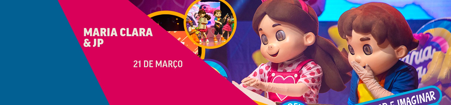 O espetáculo infantil mais esperado dos últimos anos agora é realidade! Os irmãos Maria Clara e JP atenderam aos milhões de pedidos dos fãs que tanto queriam um show dessa duplinha. Vem aí: ‘Maria Clara & JP – Brincar e Imaginar’, com os bonecos mais amados do Brasil, direto do Youtube para os palcos de todo Brasil.