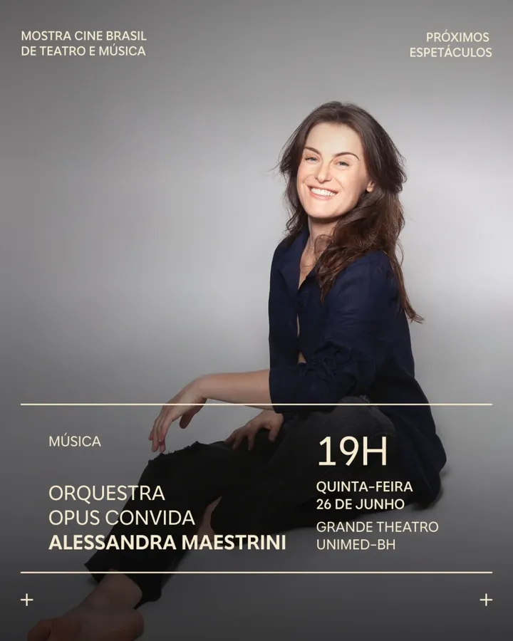 No dia 26 de junho, o palco do Cine Theatro Brasil recebe na Mostra Cine Brasil de Teatro e Música um encontro musical de rara beleza: Alessandra Maestrini, acompanhada pela Orquestra Opus sob a regência do maestro Leonardo Cunha e pelo pianista João Carlos Coutinho, apresenta um espetáculo que une sofisticação, emoção e virtuosismo.