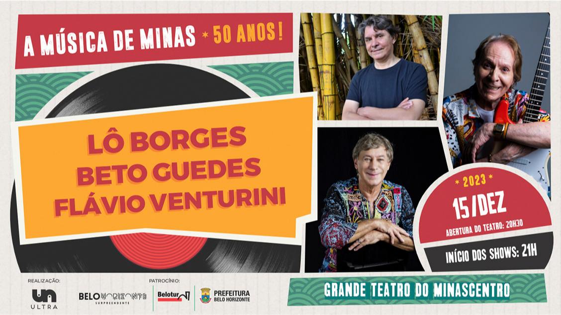 A história cuidou de guardar um lugar muito especial para todos estes ícones que hoje são celebrados no Brasil e mundo afora. E foi pensando justamente nisso que surgiu o desejo de reunir três das maiores referências dessa preciosa geração no mesmo palco. O show “50 anos da música de Minas”, que conta com shows de Lô Borges, Beto Guedes e Flávio Venturini, estreou em Juiz de Fora em maio de 2023 e já passou por Porto Alegre e Rio e Janeiro. E agora esse encontro já tem data marcada para Belo Horizonte, dia 15 de dezembro no Grande Teatro do Minascentro. O projeto, idealizado por Barral Lima, visa não somente celebrar a obra-prima que estes artistas deixaram como marca na história musical do país, como também destacar as parcerias entre eles e suas novas composições.