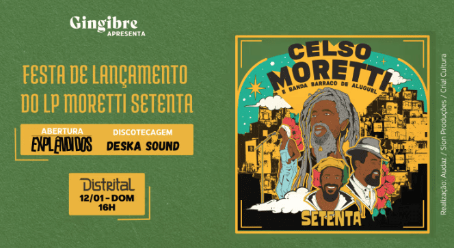 Uma festa especial com o inesquecível show Moretti Setenta e banda Barraco de Aluguel, que viaja por toda a carreira da nossa lenda do reggae.