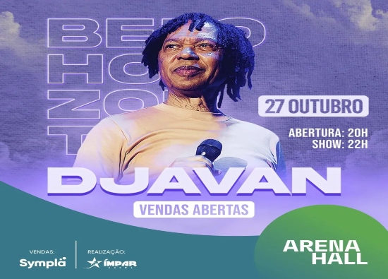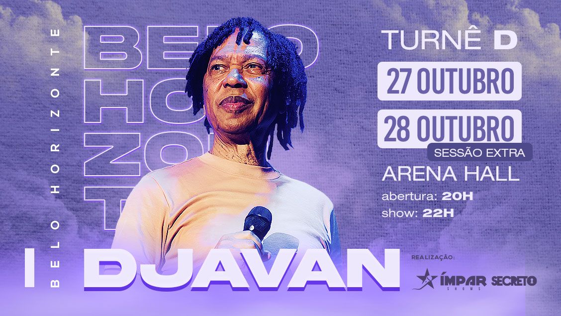 Djavan volta aos palcos com uma série de shows. Homônima ao seu 25º álbum de estúdio, lançado em agosto deste ano, a turnê ‘D’ passará por mais de 50 cidades do Brasil, da Europa e dos Estados Unidos. No dia 27 de outubro, a capital mineira recebe a turnê inédita “D” de Djavan no Arena Hall a partir das 20hs.