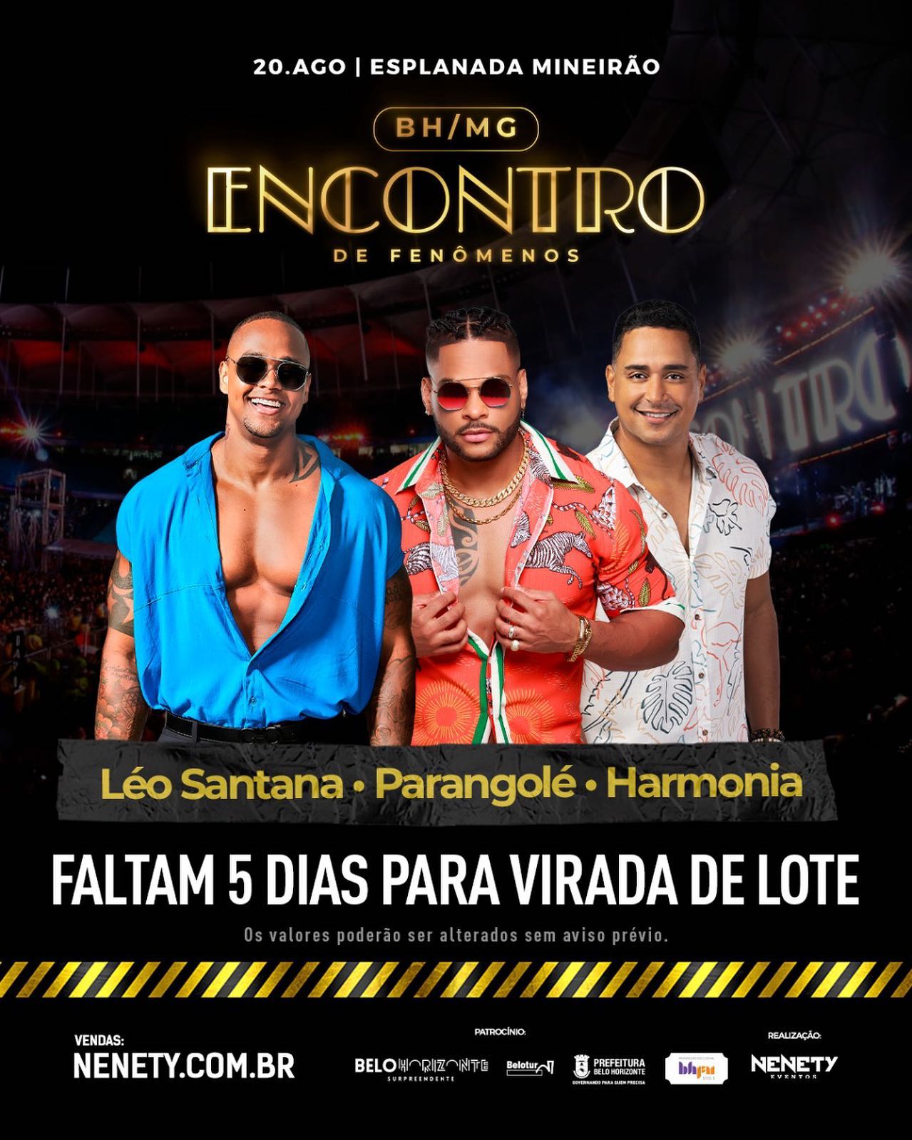 É que Harmonia do Samba, Parangolé e Léo Santana se juntaram para compor o projeto Encontro de Fenômenos, que desembarca pela primeira vez em Belo Horizonte no dia 20 de agosto, sábado, a partir das 14h, a Esplanada do Mineirão, em parceria com o tradicional Mineirão Gastrô, que vai apresentar o que a gastronomia mineira tem de melhor nas praças de alimentação do festival.
