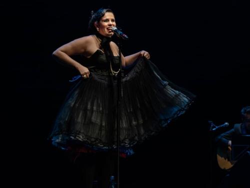 A interpretação de Mariana Arruda é teatral, pois este é seu lugar de origem, e a partir disso é feita a ponte entre música e teatro.