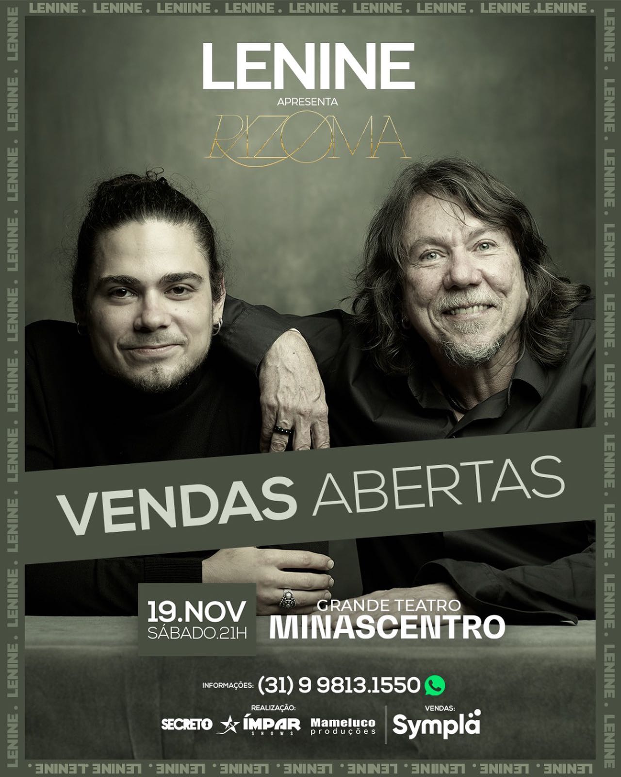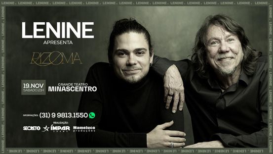 Em um show inédito, Lenine acompanhado de seu filho, Bruno Giorgi, na turnê, “Rizoma”, se apresentam no dia 27 de janeiro/2023, sábado, às 21 horas, no Grande Teatro Minascentro, em um show único.