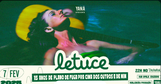No dia 7 de fevereiro, sexta-feira, Belo Horizonte recebe a turnê comemorativa dos 15 anos do álbum “Plano de fuga pra cima dos outros e de mim” do duo carioca Letuce, no Distrital. Formada pela cantora e compositora Letrux e o instrumentista Lucas Vasconcelos, a banda retorna aos palcos após quase uma década de hiato.