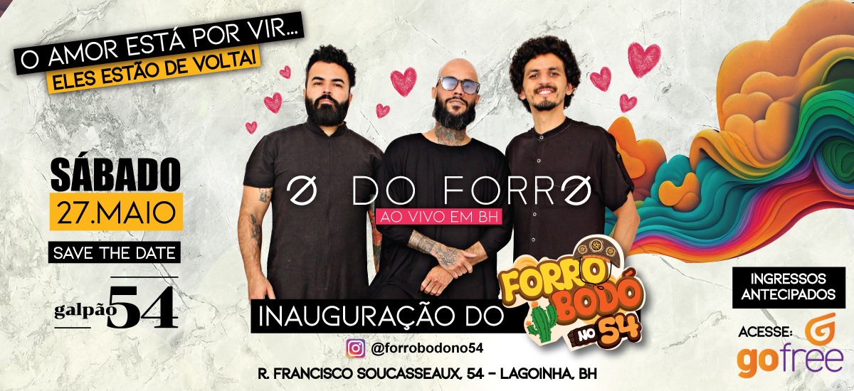 No dia 27 de maio (sábado), a casa de eventos Galpão 54 recebe o novo projeto de forró pé de serra Forrobodó. A venda dos convites está sendo feita pela Gofree. Em sua inauguração a grande atração da noite será a consagrada Banda Ó do Forró.