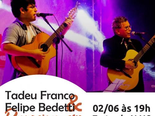 No palco, Tadeu e Felipe vão cantar músicas de seus repertórios e se juntar em duas canções feitas em parceria (“Breve” e “Santa Sara Parteira”), além de “Gavião de Penacho” (canção de domínio público, adaptada por Tadeu Franco).