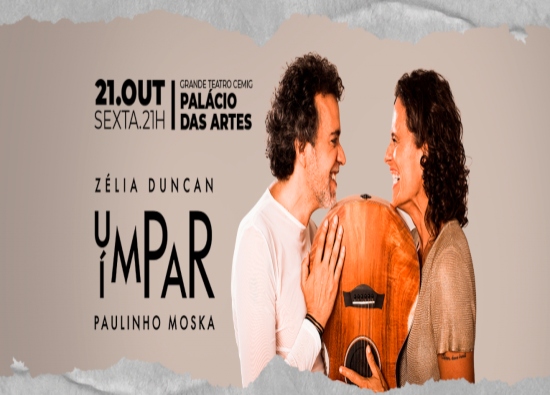 Em um show inédito, Moska e Zélia, juntos, na turnê, “Um par ímpar”, se apresentam no dia 21 de outubro, sexta, às 21 horas, no Grande Teatro do Palácio das Artes, com um show pra lá de especial.
