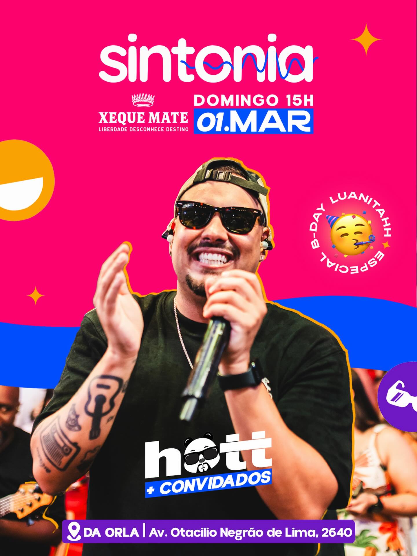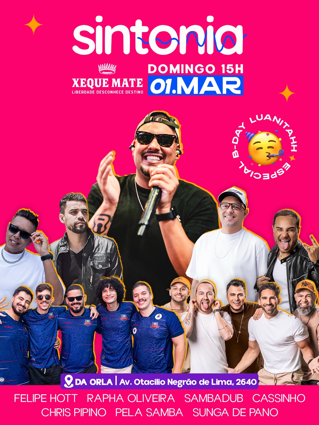 Neste domingo, 01/03, a festa vai ser pura energia com o pagode do Sintonia. A partir das 15 horas, o clima de alegria e descontração vai tomar conta do espaço, e você não vai querer ficar de fora.