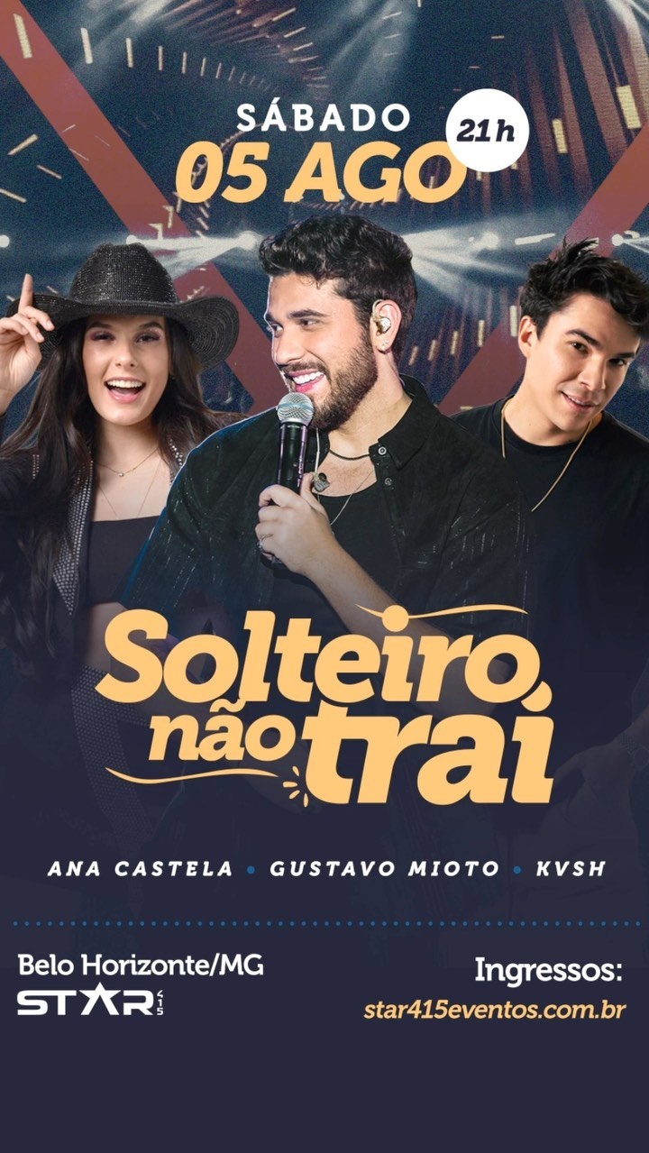 Se você é fã de Gustavo Mioto, Ana Castela e Kvsh, essa é a sua chance de ver eles ao vivo no Star415 no dia 05 de agosto.