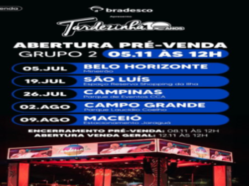 A próxima 'Tardezinha' promete trazer uma roupagem especial, com direito a uma megaestrutura e novos convidados de peso a serem revelados. Considerado um dos eventos musicais mais aguardados do ano no país, o show mantém a essência que une o clima de pôr do sol à música boa. Canções como 'Tá Vendo Aquela Lua’, ‘Ousadia & Alegria’, ‘Ainda Bem’ e ‘Caraca, Muleke!’, por exemplo, sempre marcam presença no repertório.