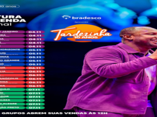 Em 2025, Belo Horizonte volta a receber Thiaguinho com a famosa turnê 'Tardezinha'. Em edição comemorativa aos 10 anos do projeto, o show que conquistou o coração dos amantes de pagode acontece no Mineirão no dia 5 de julho (sábado).