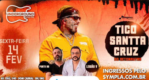 Dia 14/02 (Sexta) tem Tico Santa Cruz, a icônica voz dos Detonautas, no palco do Underground Black Pub!