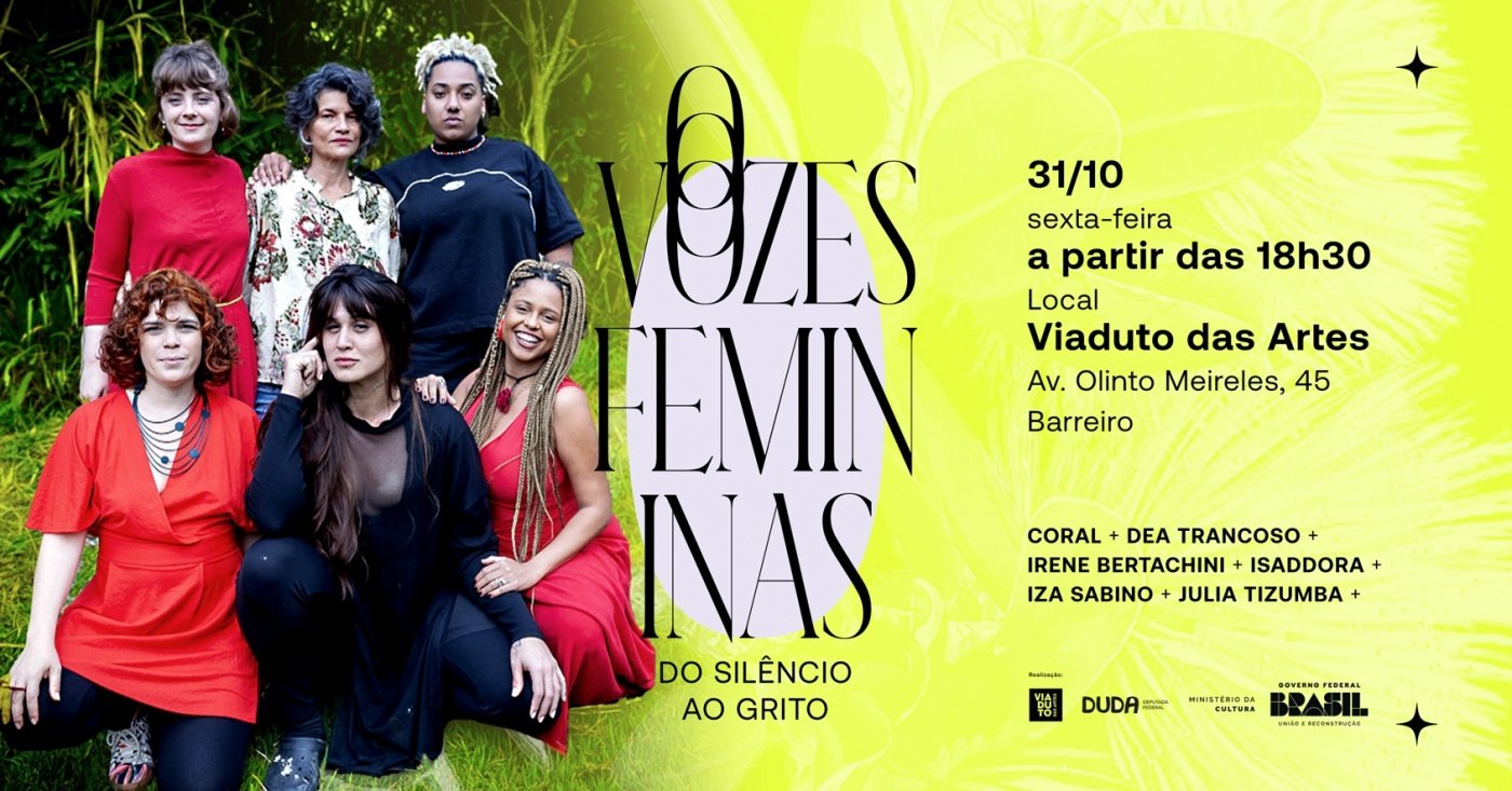 No palco, estarão juntas as artistas Coral, Déa Trancoso, Irene Bertachini, Isaddora, Iza Sabino e Júlia Tizumba, acompanhadas por uma banda formada por Débora Costa (bateria), Raissa Uchoa (baixo) e Glaw Nader (teclado).