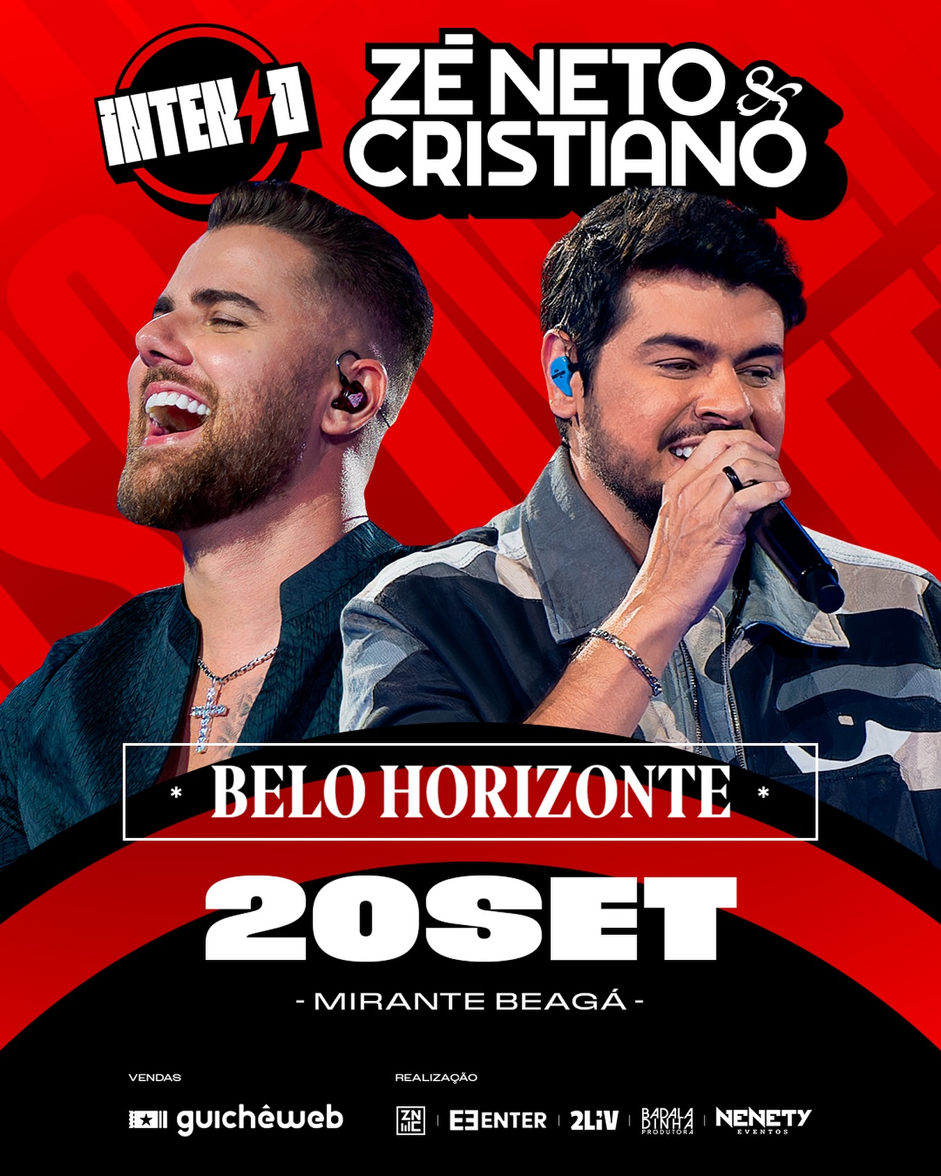 Belo Horizonte será palco de um evento histórico! No dia 20 de setembro, Zé Neto & Cristiano desembarcam na cidade com a primeira turnê do seu evento próprio, depois de 2 anos sem vir a capital. A dupla promete uma noite marcante com mais de 3 horas de show e muitas surpresas.