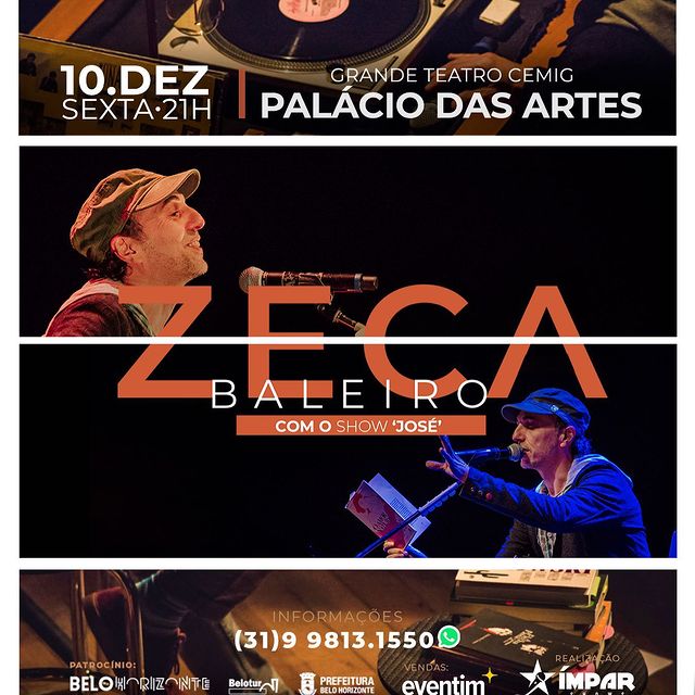 A apresentação do show “José” acontecerá no Palácio das Artes, no dia 10 de dezembro, às 21h.