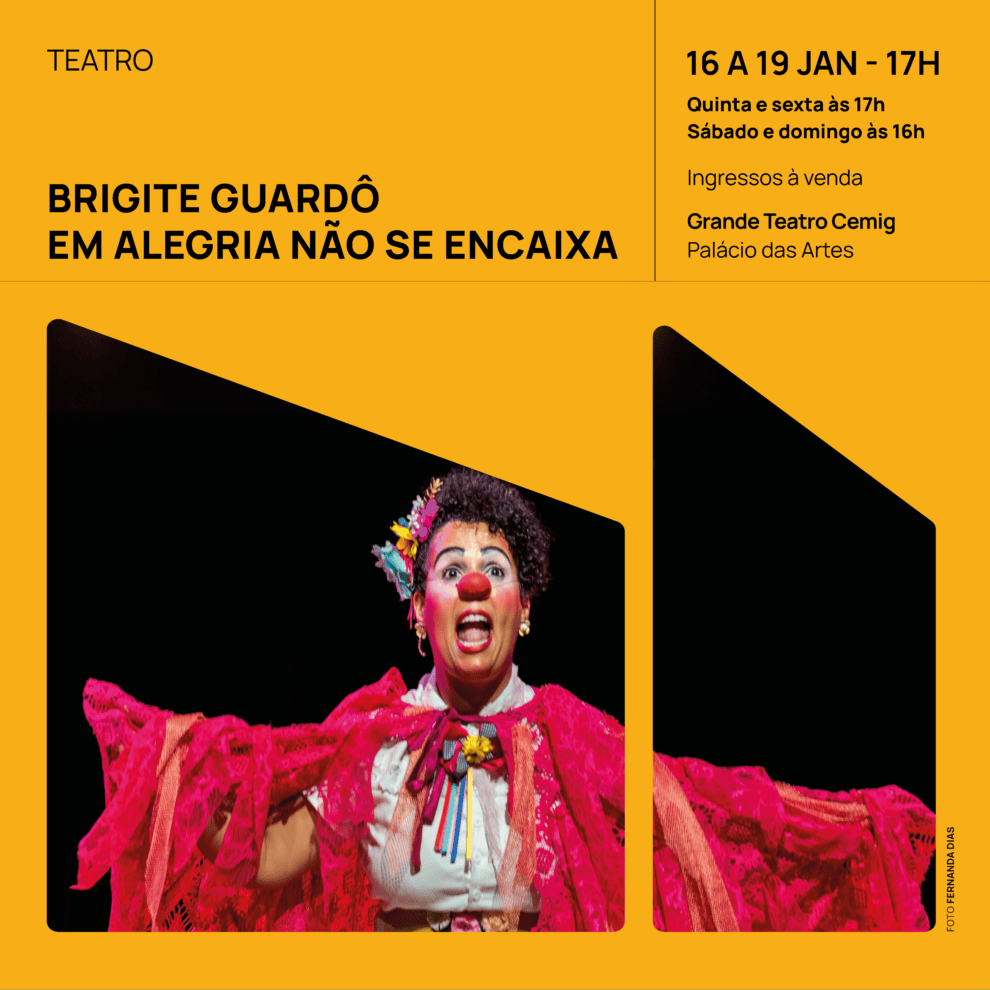 Dos dias 16 a 19 de janeiro, o Teatro João Ceschiatti localizado no Palácio das Artes, recebe Brigite Guardô para o espetáculo “Alegria não se encaixa”.