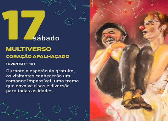 Durante o espetáculo gratuito, os visitantes conhecerão um romance impossível, com uma trama que envolve risos e diversão para todas as idades. “Coração Apalhaçado”, oriundo da coletiva Diz Trava Através do Olhar, conta a história de um “quase amor” de palhaces, apesar de todos os seus percalços.