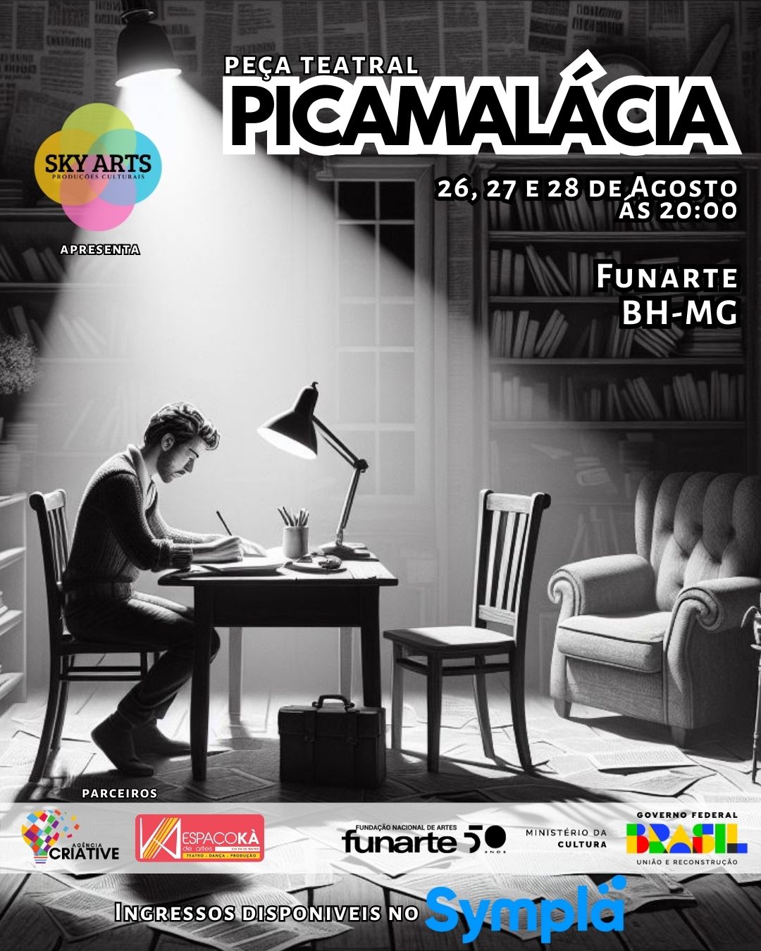 O Complexo Cultural Funarte MG recebe entre os dias 26 e 28 de agosto, às 20h, o espetáculo "Picamalácia" que convida o público a uma jornada inusitada pela mente humana e pelas curiosidades da língua portuguesa. Os ingressos custam R$20 (inteira), R$10 (meia-entrada) e podem ser adquiridos no sympla.