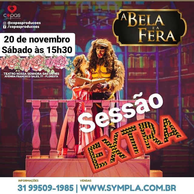 A Copas Produções leva aos palcos o Musical “A Bela e a Fera”. Esta história de amor está cheia de personagens inesquecíveis, cenas fantásticas e figurinos deslumbrantes, além de belas canções. Escrito em 1740 por Gabrielle-Suzanne Barbot, o clássico apresenta diversas versões ao longo do tempo, mas foi em 1991, com a animação da Walt Disney, que “A Bela e a Fera” conquistou o mundo.