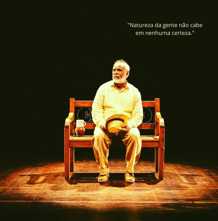 Grande Sertão: Veredas - obra prima da nossa literatura, recebe leitura teatral. No recorte, o personagem central do romance, o ex-jagunço Riobaldo, relembra sua vida e seus três grandes amores: Diadorim, Nhorinhá e Otacília.
