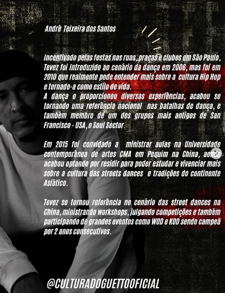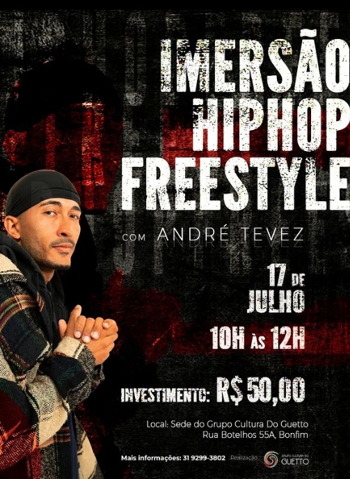O artista @tevez._ estará em BH com um workshop de imersão de 2 horas com foco em Hip Hop Freestyle!