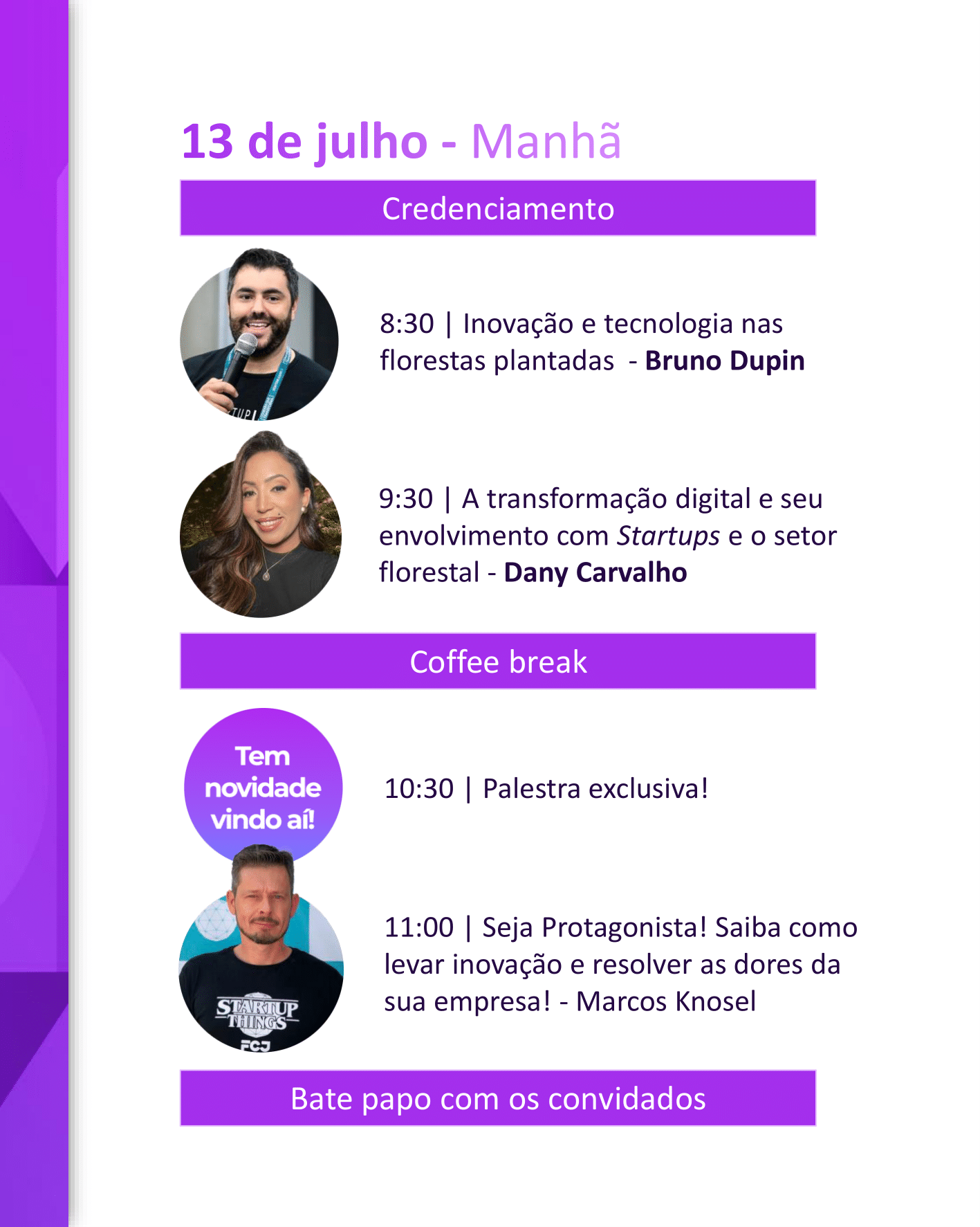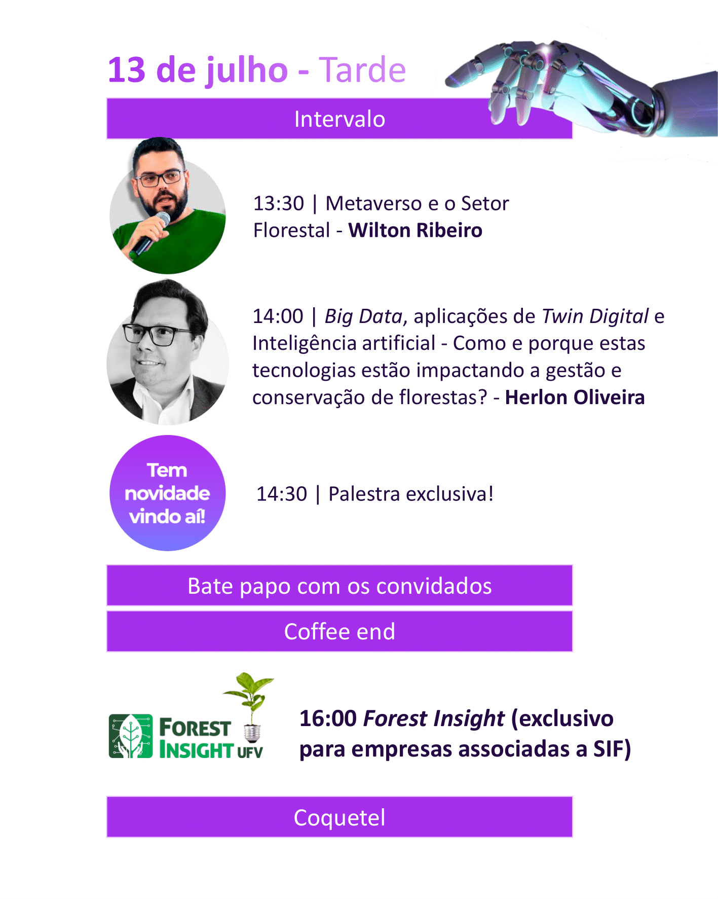 Parte do evento será dedicada a realização do Forest Insight, espaço exclusivo para que nossas empresas associadas conheçam as soluções disponíveis para suas dores, vindas das startups participantes.