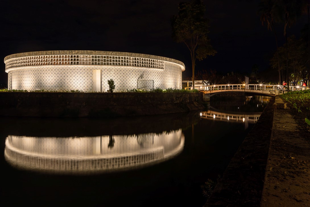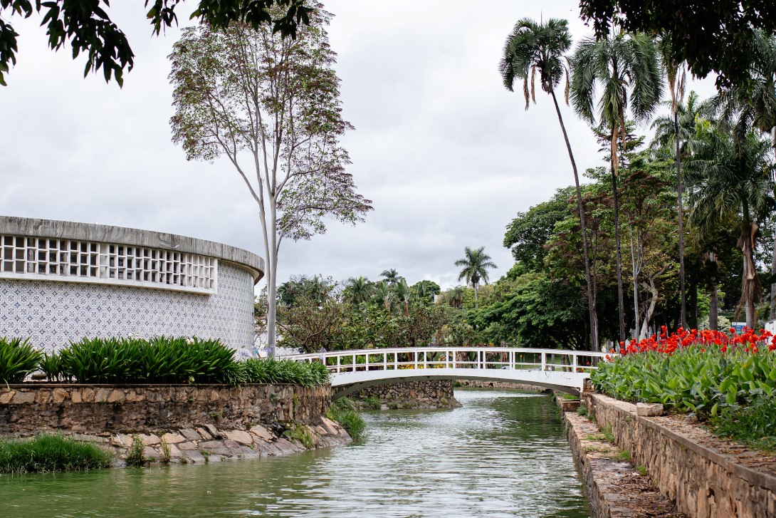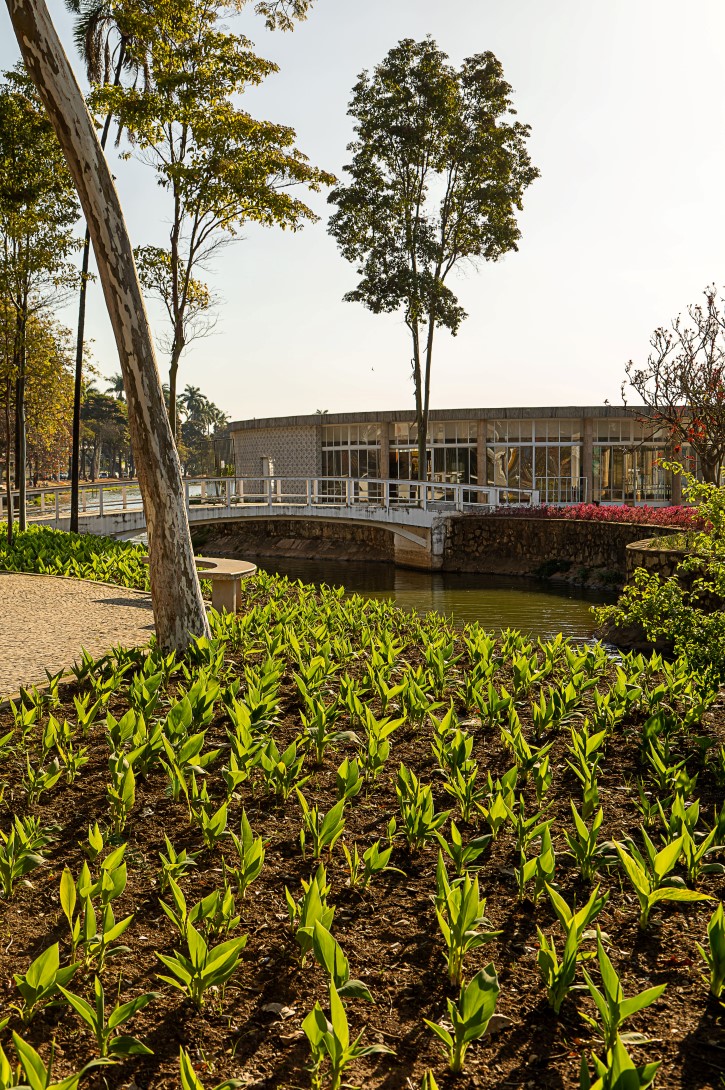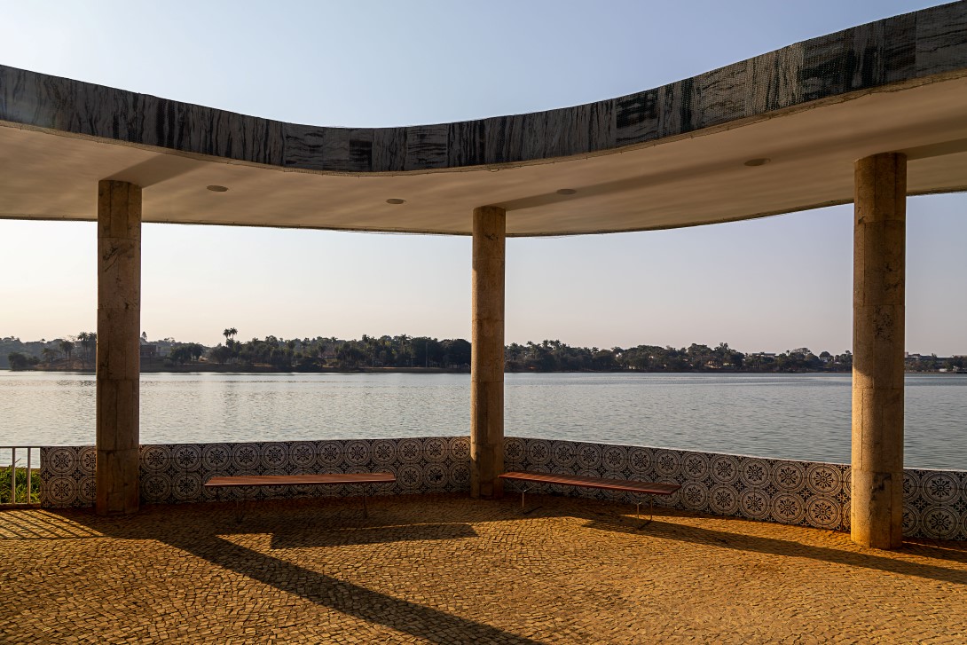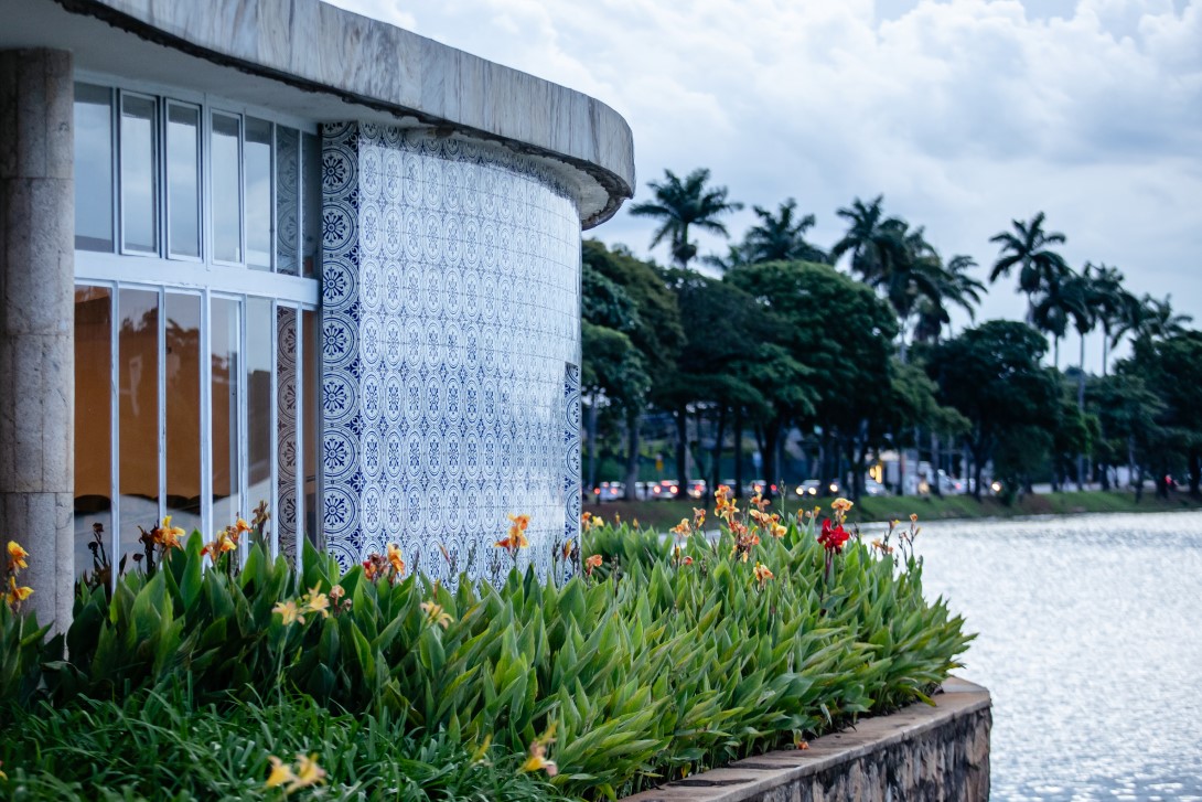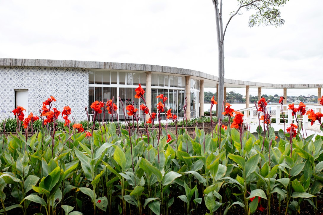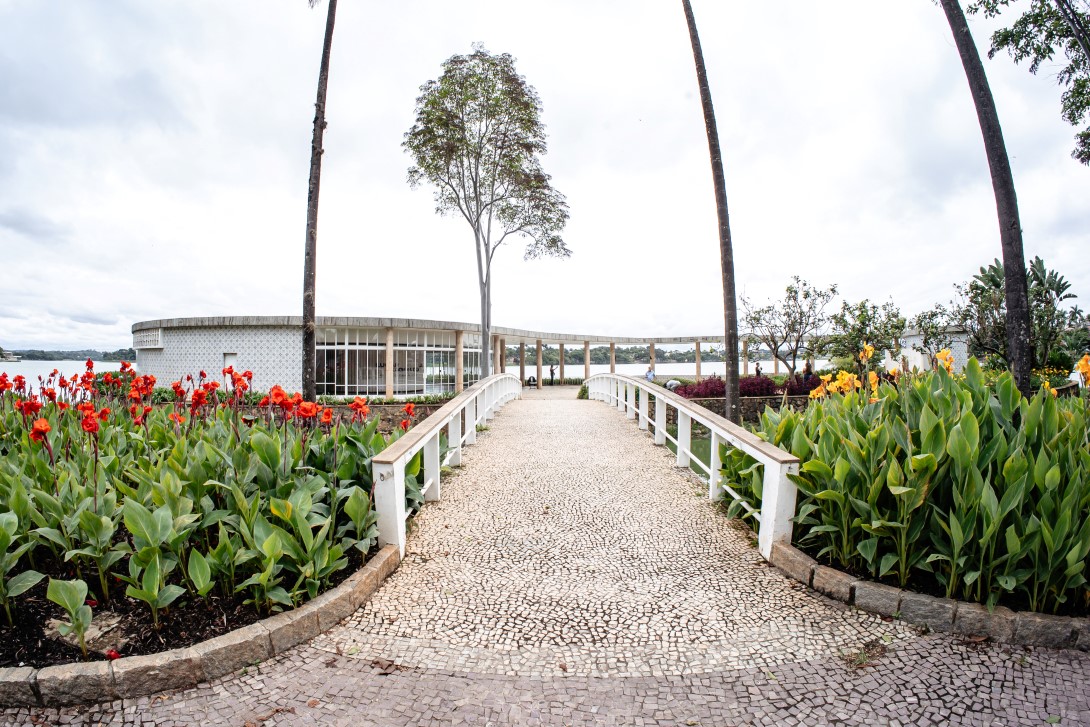 A Casa do Baile - Centro de Referência de Arquitetura, Urbanismo e Design, projetada por Oscar Niemeyer na década de 1940, integra o Conjunto Moderno da Pampulha. A planta é composta por dois volumes circulares tangentes, ligados por uma marquise sinuosa que se estende em direção à Lagoa da Pampulha, acompanhando suas curvas. A marquise, sustentada por colunas, conecta-se a um anexo de forma orgânica, próximo a um pequeno palco circular cercado por espelho d’água. O paisagismo é de Roberto Burle Marx, e o projeto estrutural foi desenvolvido por Albino Froufe. Localizada na Lagoa da Pampulha, a edificação estabelece relação direta com a água, áreas verdes e o entorno urbano. Atualmente, o espaço abriga exposições, mostras, publicações, encontros, seminários e ações educativas voltadas à arquitetura, ao urbanismo e ao design.