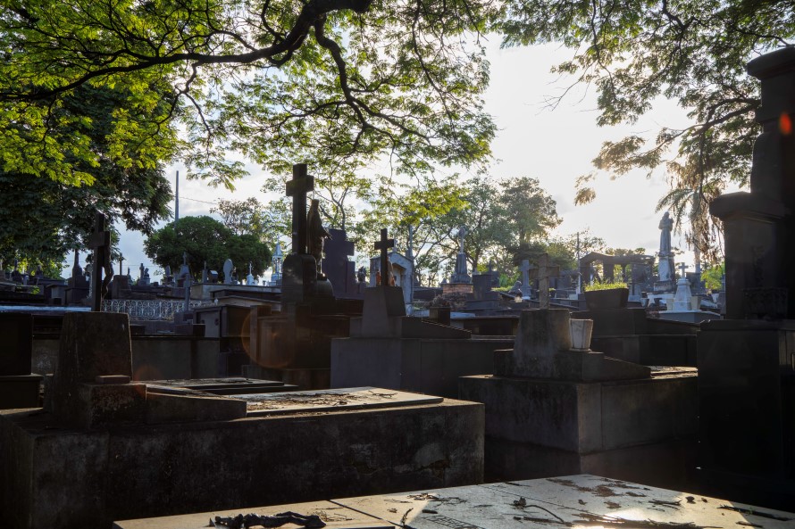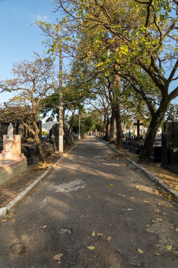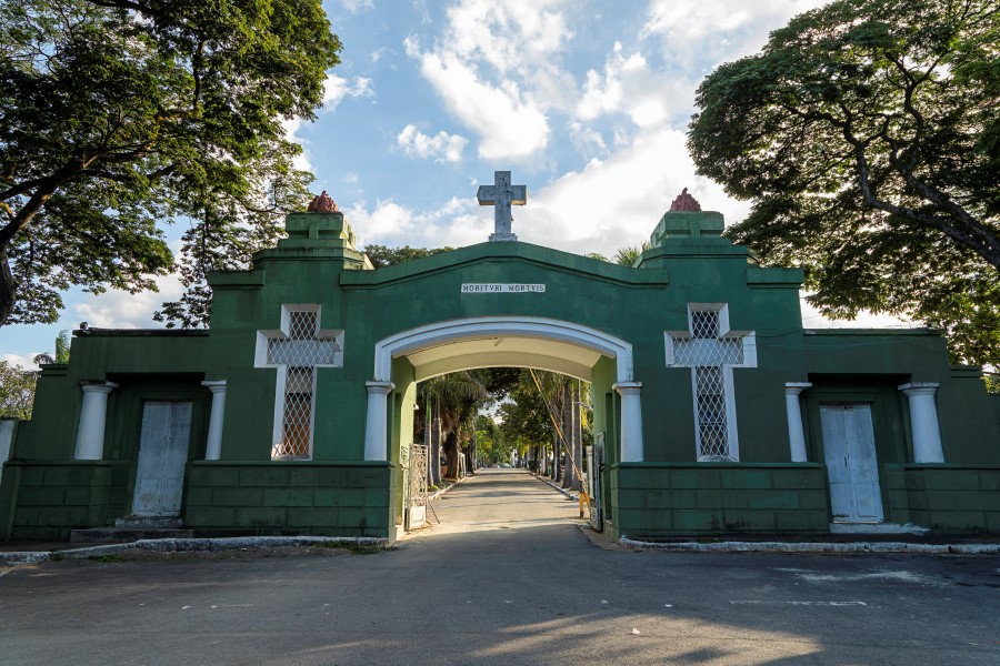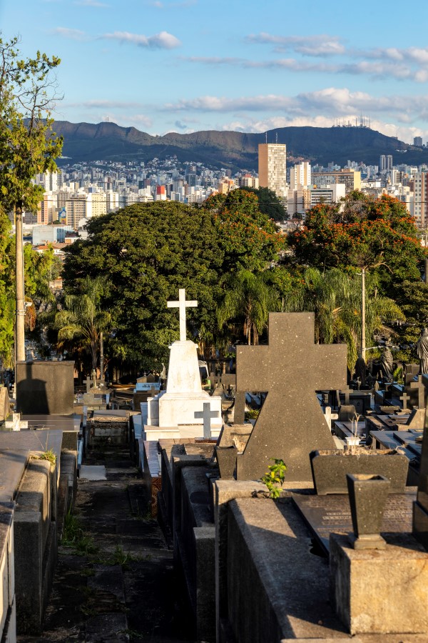 Construído e inaugurado na mesma época que a capital mineira, em 1897, o Cemitério do Bonfim ocupa uma área de 160 mil m² na região noroeste de Belo Horizonte. Seu traçado segue a lógica geométrica da cidade planejada, com 54 quadras distribuídas entre duas alamedas principais e diversas vias secundárias. O espaço abriga uma diversidade de túmulos, capelas e mausoléus, com elementos arquitetônicos e escultóricos que transitam entre a Belle Époque, o Art Déco e o modernismo brasileiro. As sepulturas centrais, mais elaboradas, utilizam materiais nobres e são marcadas por obras de escultores italianos, enquanto as quadras externas apresentam construções mais simples. A arborização madura e as largas alamedas conferem ao local um aspecto imponente e silencioso, preservando camadas visuais e históricas importantes da cidade.