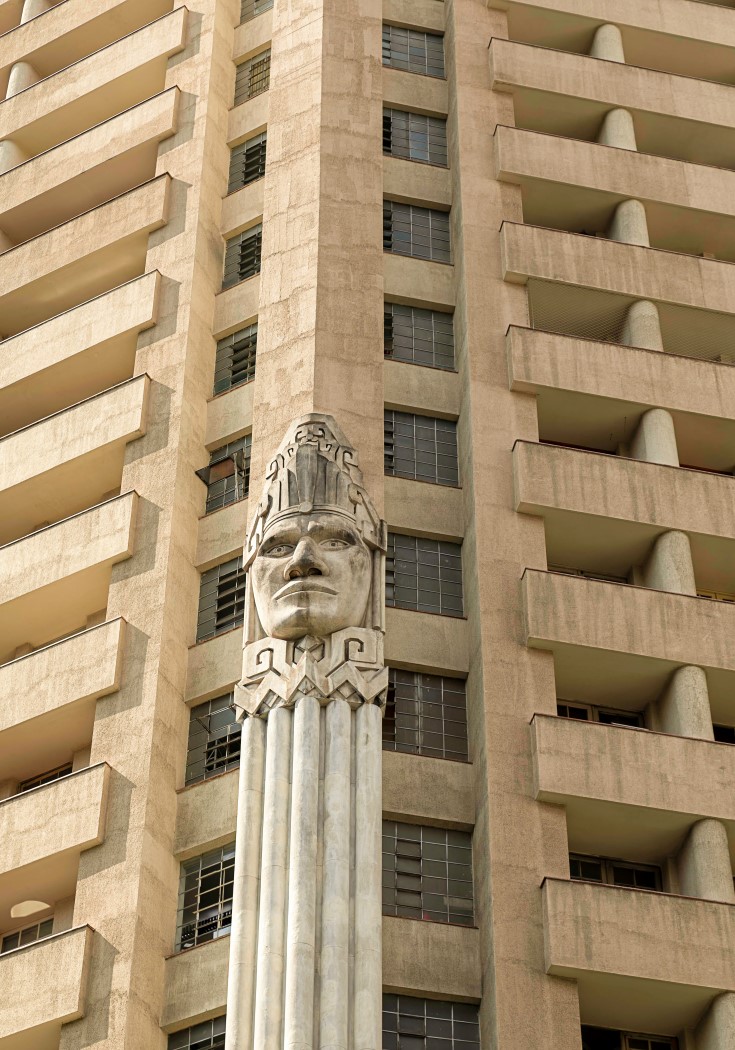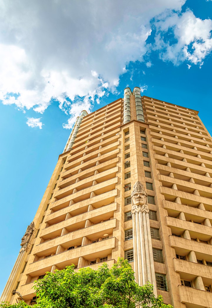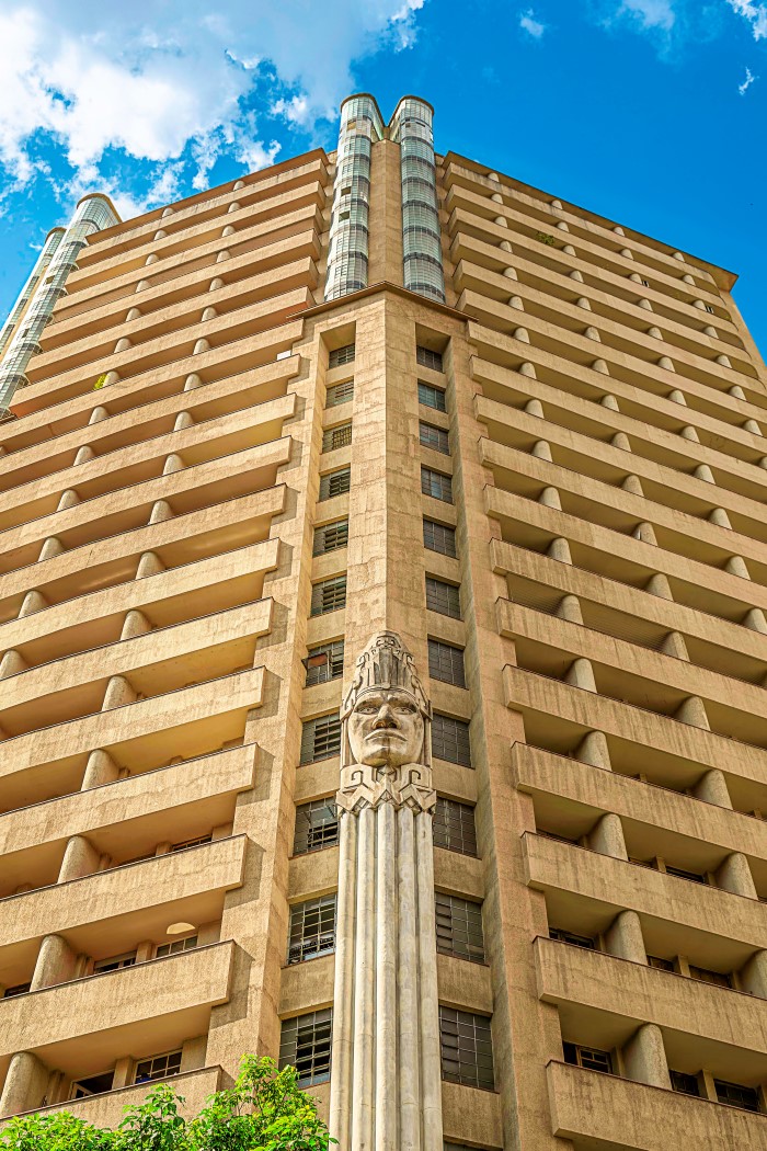 O Edifício Acaiaca, projetado em 1943 por Luiz Pinto Coelho e inaugurado em 1947, é um ícone da arquitetura art déco em Belo Horizonte. Com 120 metros de altura e 30 andares, foi o primeiro arranha-céu da cidade. Destaca-se pelas carrancas esculpidas na fachada, em homenagem à tribo Acaiaca, e por ter abrigado um refúgio antiaéreo durante a Segunda Guerra Mundial. Suas colunas internas em forma de cogumelo permitem amplos salões sem divisórias fixas. Teve a fachada tombada pelo Patrimônio Histórico Municipal em 1994.