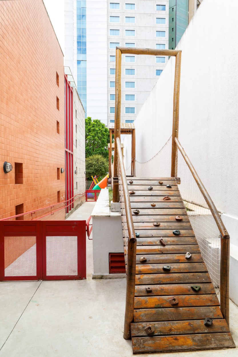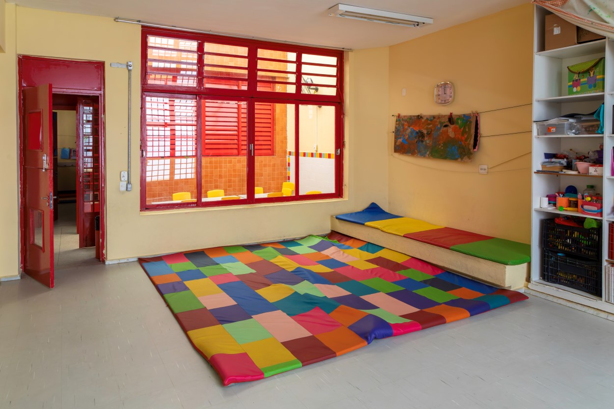 Com capacidade para atender até 382 crianças de zero a cinco anos, a edificação é composta por dois pavimentos. No primeiro, encontram-se pátio coberto, salas de aula, repouso e atividades, cozinha, refeitório, banheiros e área de serviço. O segundo pavimento abriga oito salas de aula, sala de professores e espaço de recreação. Os blocos são interligados por passagens cobertas, com integração entre os ambientes internos e as áreas externas.