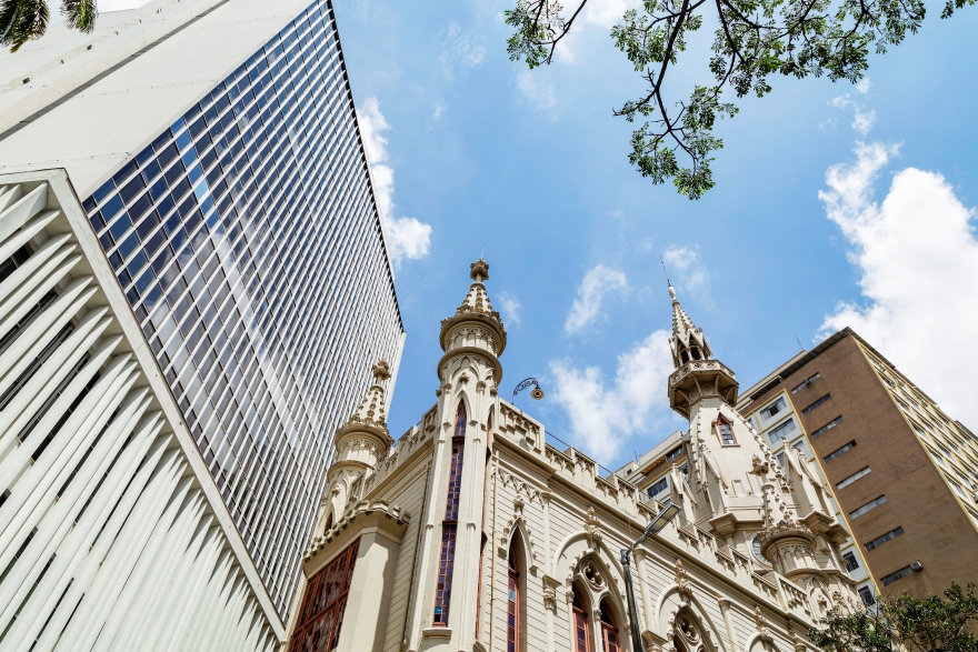 O Museu da Moda de Belo Horizonte – MUMO, inaugurado em 2016 como o primeiro museu público de moda do Brasil, é um dos marcos da capital mineira. Instalado em um edifício histórico de 1914, projetado por Francisco Isidro Monteiro, o prédio subverte o uso tradicional da arquitetura neogótica — comum em instituições religiosas — ao aplicá-la em uma construção de uso público.Destaca-se pela fachada imponente, pela iluminação externa e pelos vitrais vermelhos e azuis que filtram a luz natural, criando um efeito visual marcante que, à noite, forma uma bela vista a partir da sacada do Edifício Maletta.