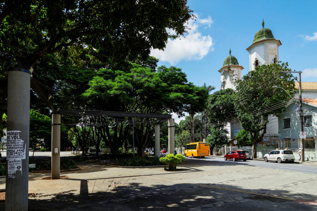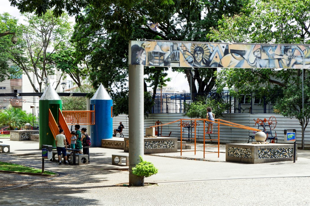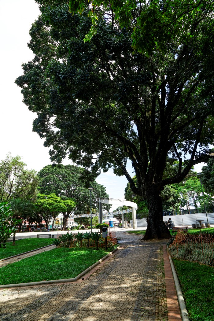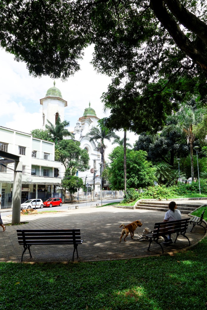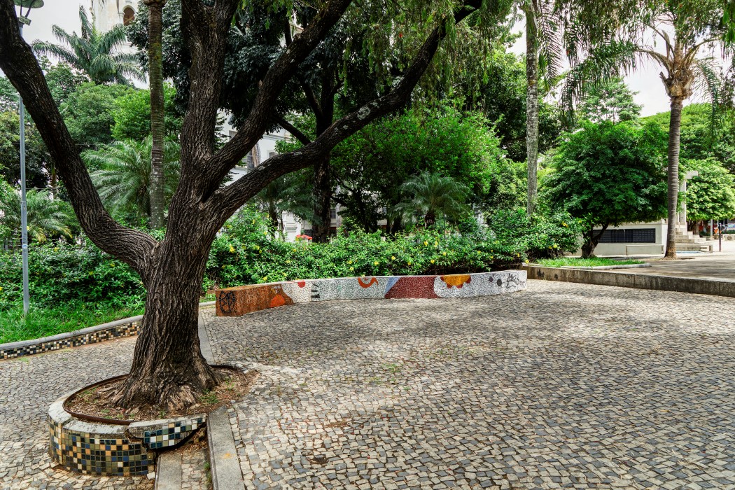 A Praça Duque de Caxias, inaugurada em 1937, está localizada no ponto mais alto do bairro Santa Tereza. Organiza-se a partir de um traçado simétrico, com alamedas, áreas abertas e elementos centrais como o Coreto. A vegetação, composta por árvores de médio porte e jardins ornamentais, oferece sombreamento pontual e contribui para a ambiência tranquila do espaço. A praça conta com mobiliário urbano, como bancos e canteiros definidos, e está rodeada por edificações de valor cultural. Entre elas, destacam-se o Cine Santa Tereza, voltado à difusão da cultura cinematográfica, e a Igreja de Santa Tereza, que reforça o caráter histórico da região. O entorno é formado por edificações de baixa altura e construções preservadas, mantendo a identidade visual do bairro.
