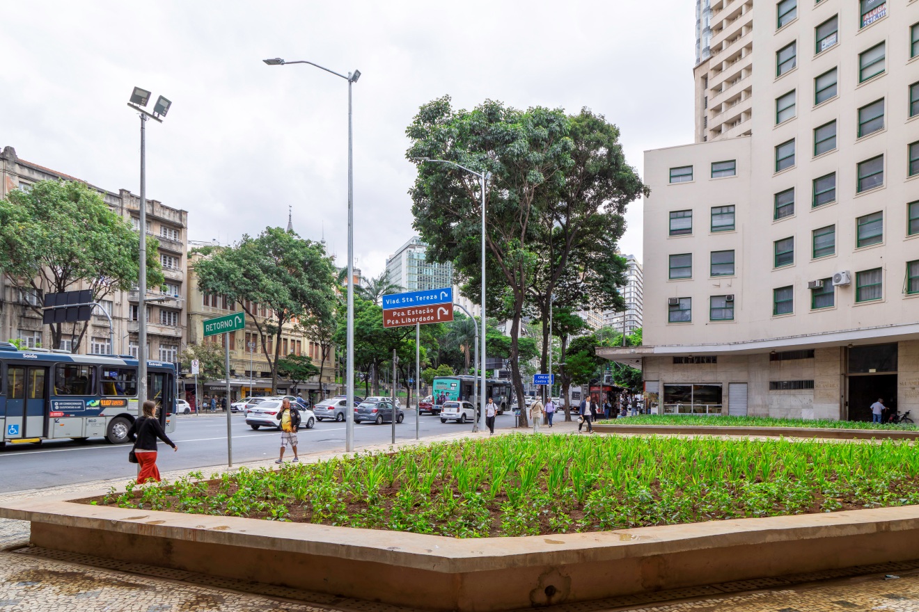 Na década de 1970, um anexo de dois andares foi construído entre os edifícios, descaracterizando o projeto original e obstruindo a vista para o viaduto. Em 2024, esse anexo foi demolido, e a praça foi restaurada com piso em calçada portuguesa, canteiros, bancos e lixeiras, resgatando suas características originais.