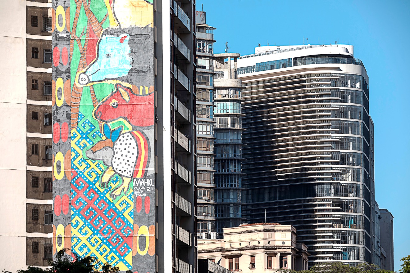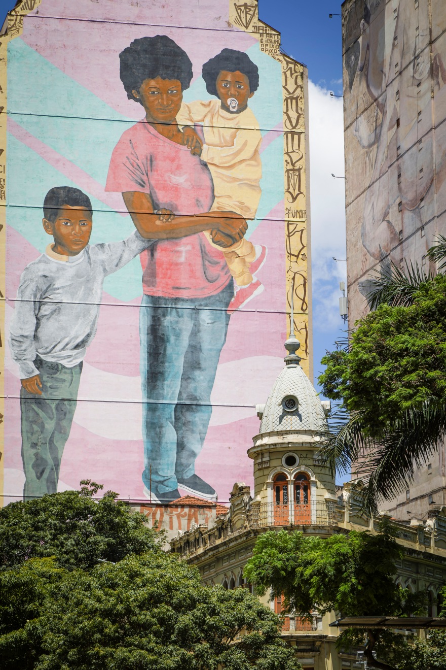 – Murais em fachadas de edifícios como o Copacabana, Roma e Rochedo.