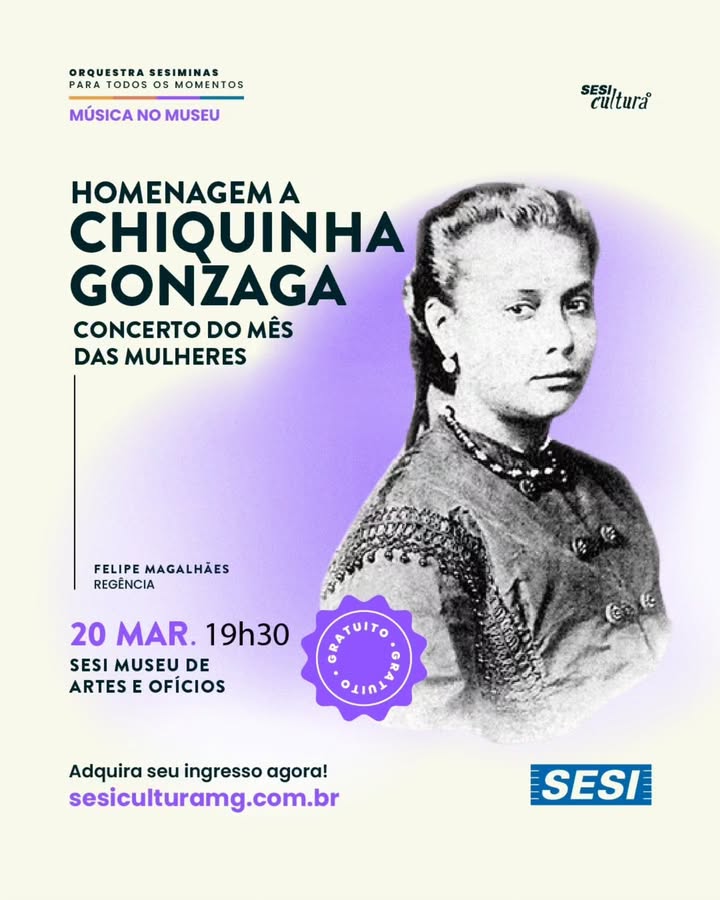 A Orquestra Sesiminas dá início à série Música no Museu, um projeto que promove concertos gratuitos no SESI Museu de Artes e Ofícios (MAO), proporcionando uma experiência que conecta a música ao patrimônio cultural. A primeira edição acontece no dia 20 de março, às 19h30, com um concerto especial em homenagem a Chiquinha Gonzaga, uma das maiores compositoras da história da música brasileira.