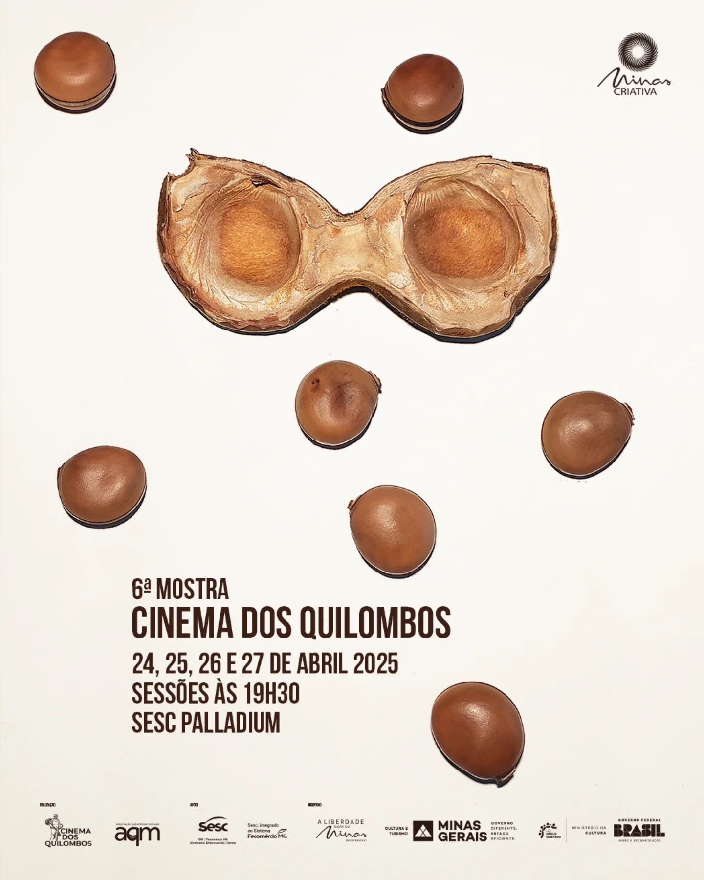 De 24 a 27 de abril acontece, no cinema do Sesc Palladium, a 6ª Mostra Cinema dos Quilombos, composta por filmes de estados como Minas Gerais, Maranhão, Mato Grosso, Rio de Janeiro e Tocantins. O recorte da mostra são obras realizadas por quilombolas ou parceiros, trazendo para as telas a cultura rural e urbana dos remanescentes de quilombos que resistiram à escravidão e seguem organizados para manter seus territórios e suas tradições. As temáticas abordam as lutas pela preservação dos territórios e dos direitos humanos, a cultura e as memórias individuais e coletivas, traçando um amplo painel de caráter político, social, cultural e etnográfico. A 6ª Mostra Cinema dos Quilombos é realizada através de Lei Paulo Gustavo.