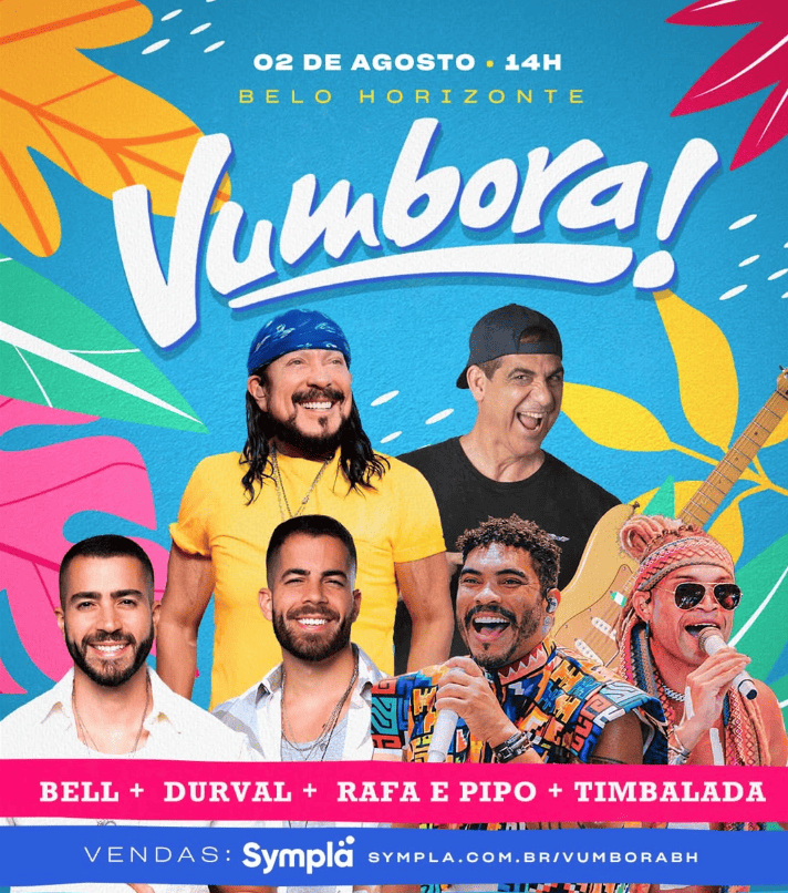 Bloco Vumbora desembarca em BH com Bell Marques, Durval Lelys, Timbalada e os irmãos Rafa e Pipo, no dia 02 de agosto, no Mineirinho. O Bloco Vumbora é um dos principais blocos do carnaval de Salvador.
