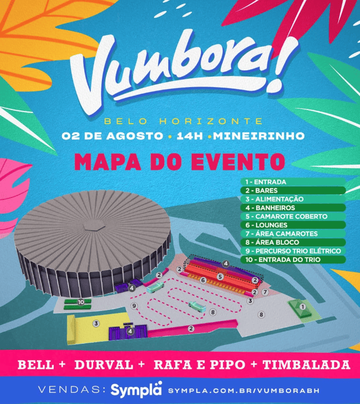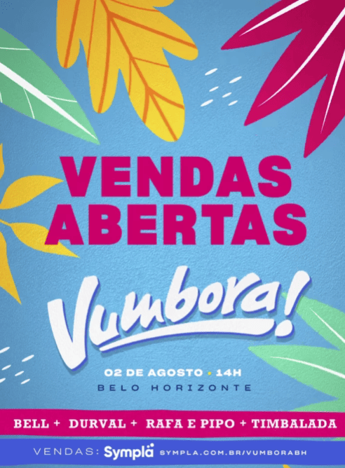 Quem já estava com saudade de uma micareta, pode se preparar. A capital mineira vai se transformar no carnaval da Bahia, com muito axé e folia. Com circuito indoor, com trios elétricos, abadá, e toda a alegria de uma micareta, o Bloco Vumbora desembarca em BH no dia 02 de agosto, sábado, a partir das 14 horas, no Mineirinho, para o melhor carnaval fora de época. Com mais de 8 horas de folia atrás do trio elétrico, e com quatro grandes nomes do carnaval baiano, Bell Marques, Durval Lelys, Timbalada, e Rafa e Pipo, são as atrações da terceira edição do bloco. O público poderá escolher entre 2 setores: Bloco Vumbora e Camarote Vumbora. Os ingressos poderão ser adquiridos no site do Sympla.