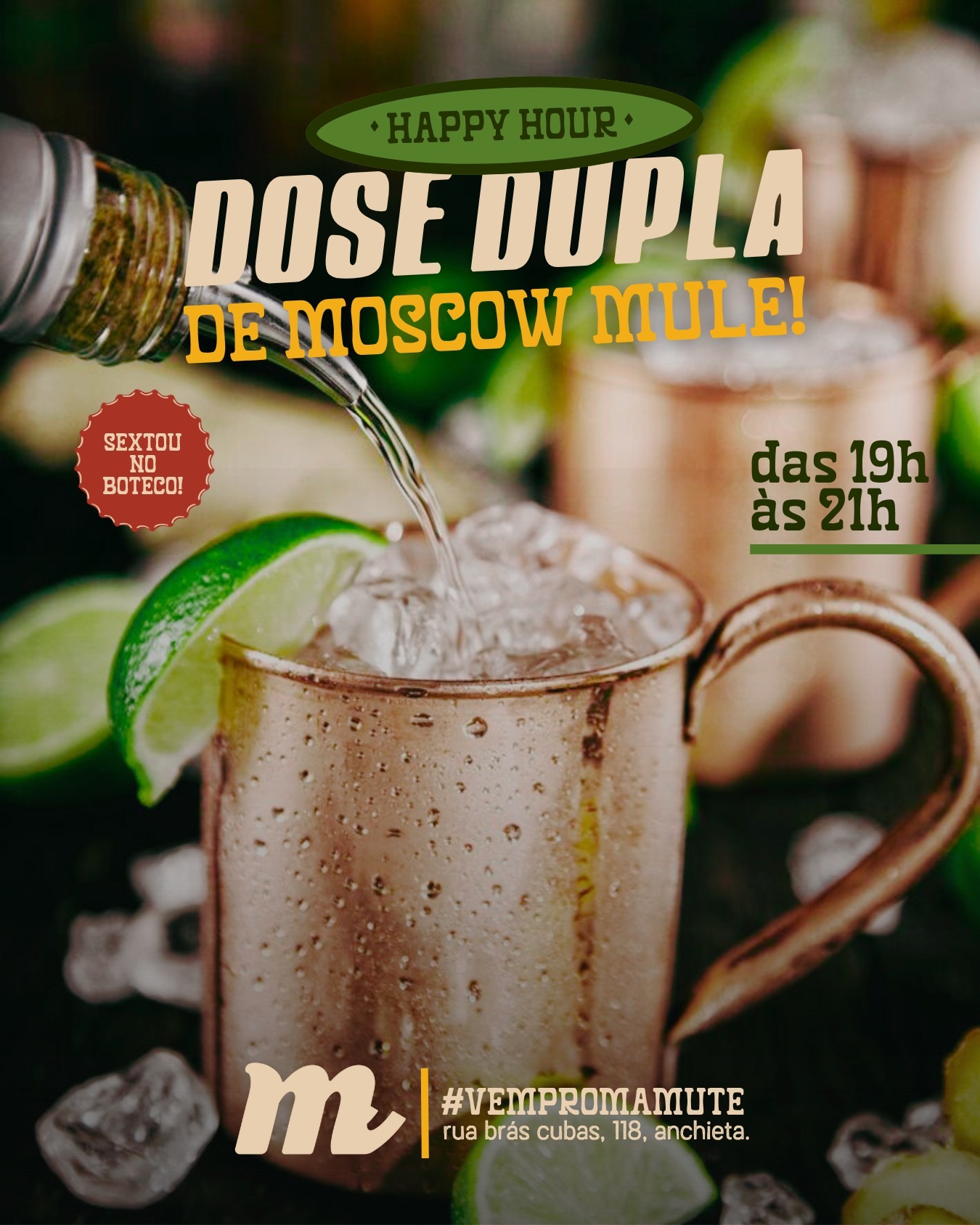 O Mamute Bar dedica-se ao preparo caseiro de porções e petiscos clássicos dos botecos mineiros. Os pedidos podem ser acompanhados de drinks, cervejas, doses e opões sem álcool. Para complementar a experiência do visitante, a casa também apresenta shows de música ao vivo e transmite partidas de futebol do Clube Atlético Mineiro e Cruzeiro Esporte Clube.