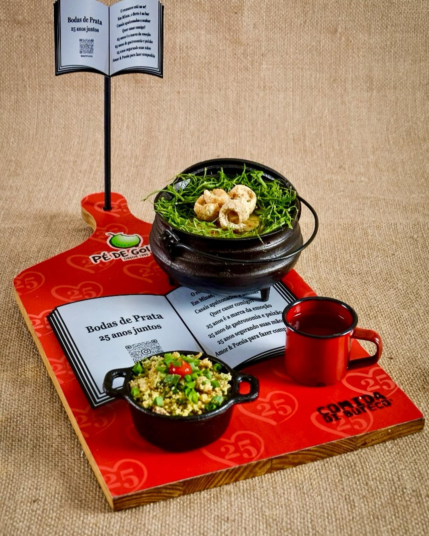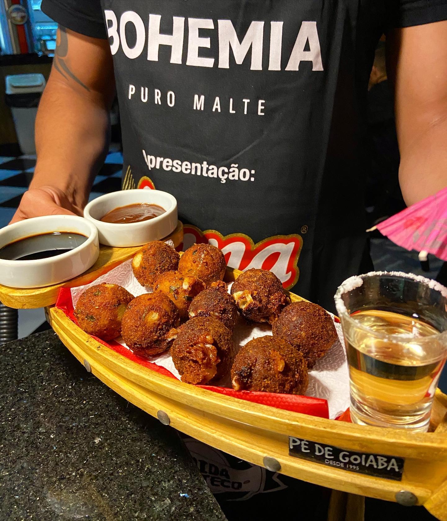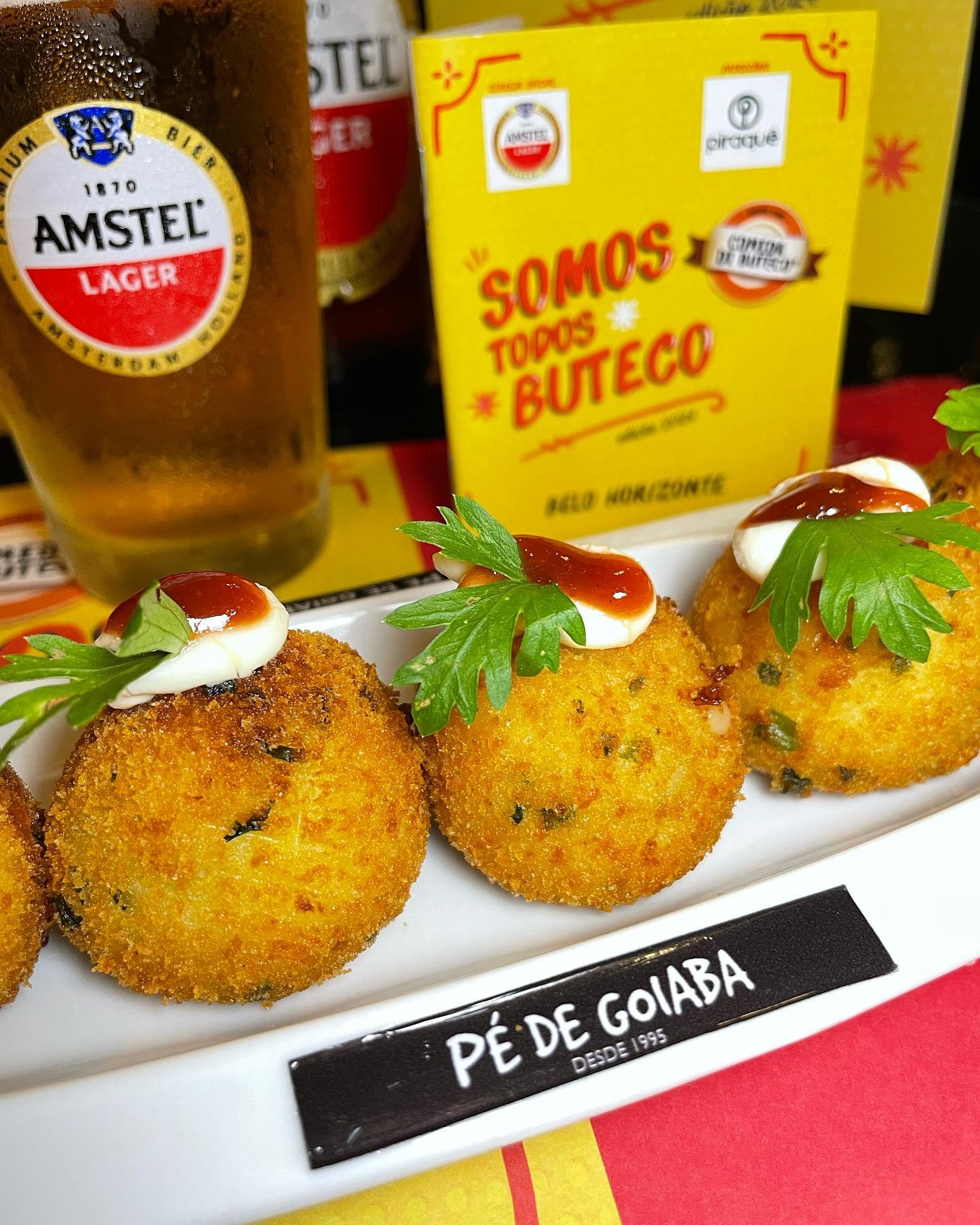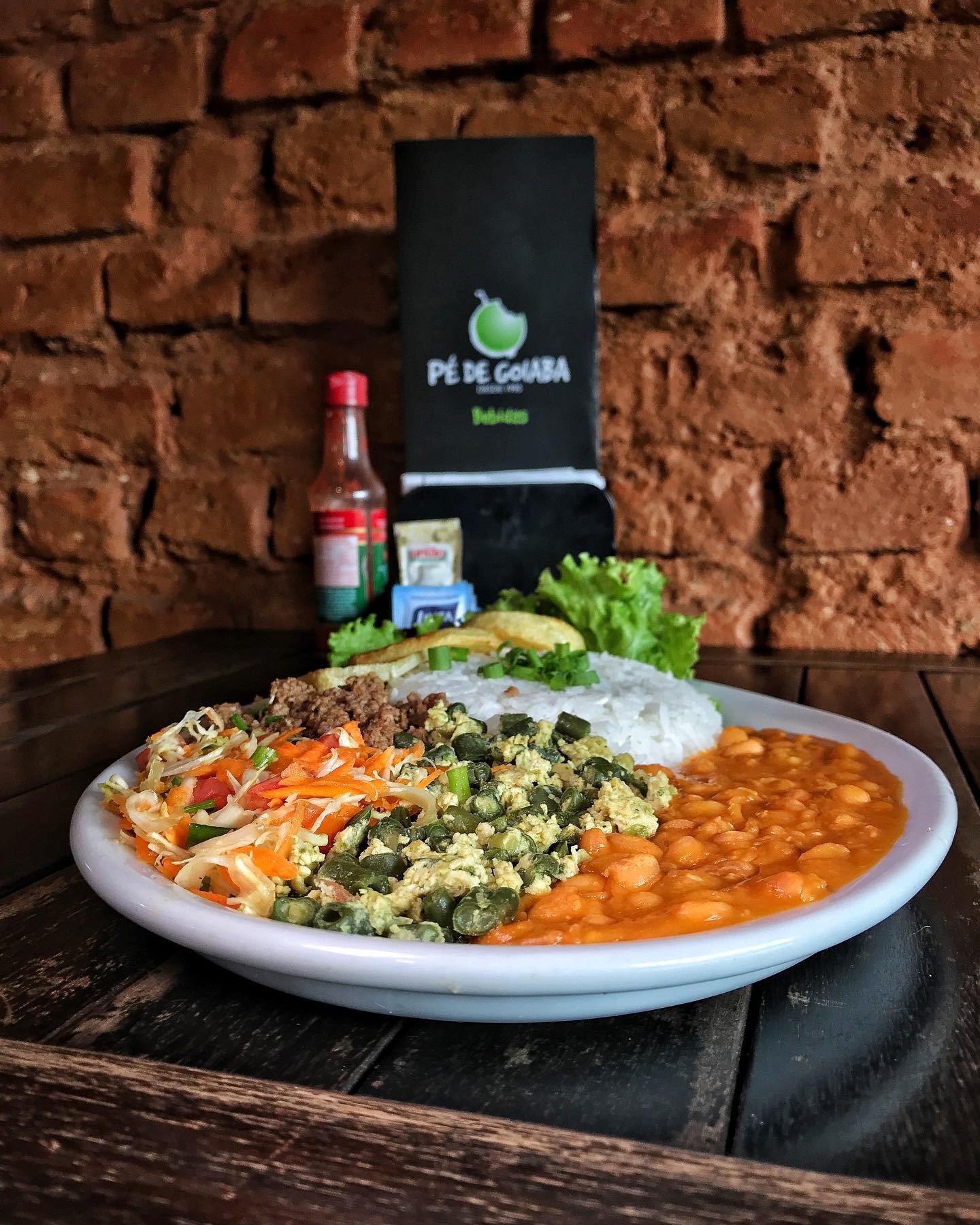 O Pé de Goiaba dedica-se ao preparo de refeições e porções caseiras da culinária mineira e cortes de churrasco, que podem ser acompanhados de bebidas variadas, incluindo cervejas, opções sem álcool e drinks. Os destaques do bar são a cachaça da casa, produzida na cidade de Ouro Branco (MG), e o emblemático Romeu e Julieta — prato preparado com lombo ao molho de goiabada e muçarela, acompanhado de fatias de goiaba e farofa de abobrinha.