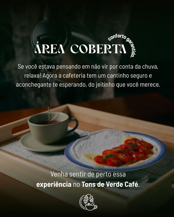 Reúna seus amigos e familiares para momentos descontraídos e cheios de sabor na cafeteria Tons de Verde Café. Delícias caseiras são preparadas com capricho que vão desde bolos, criossants e sanduiches quentinhos até sobremesas variadas para completar suas refeições com requinte. O estabelecimento possui local apropriado para pets além de espaço kids para comodidade e tranquilidade.
