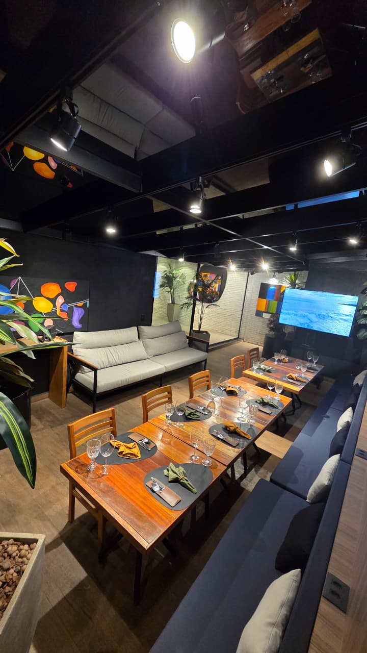 Ambiente modular que se adapta a diferentes formatos: jantares corporativos, workshops gastronômicos, confrarias exclusivas, coquetéis, lançamentos de produtos e celebrações íntimas ou grandiosas;